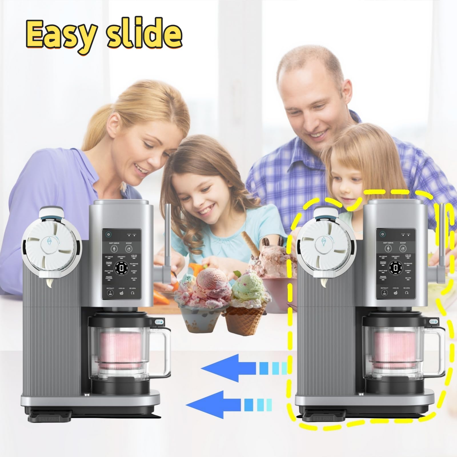 - Easy Sliding:The smooth bottom of the sliding Pad allows you to easily move the ice cream maker without using a lot of force.the non-slip surface design can fix the machine on the sliding Pad,won't scratch the table when you move it.
