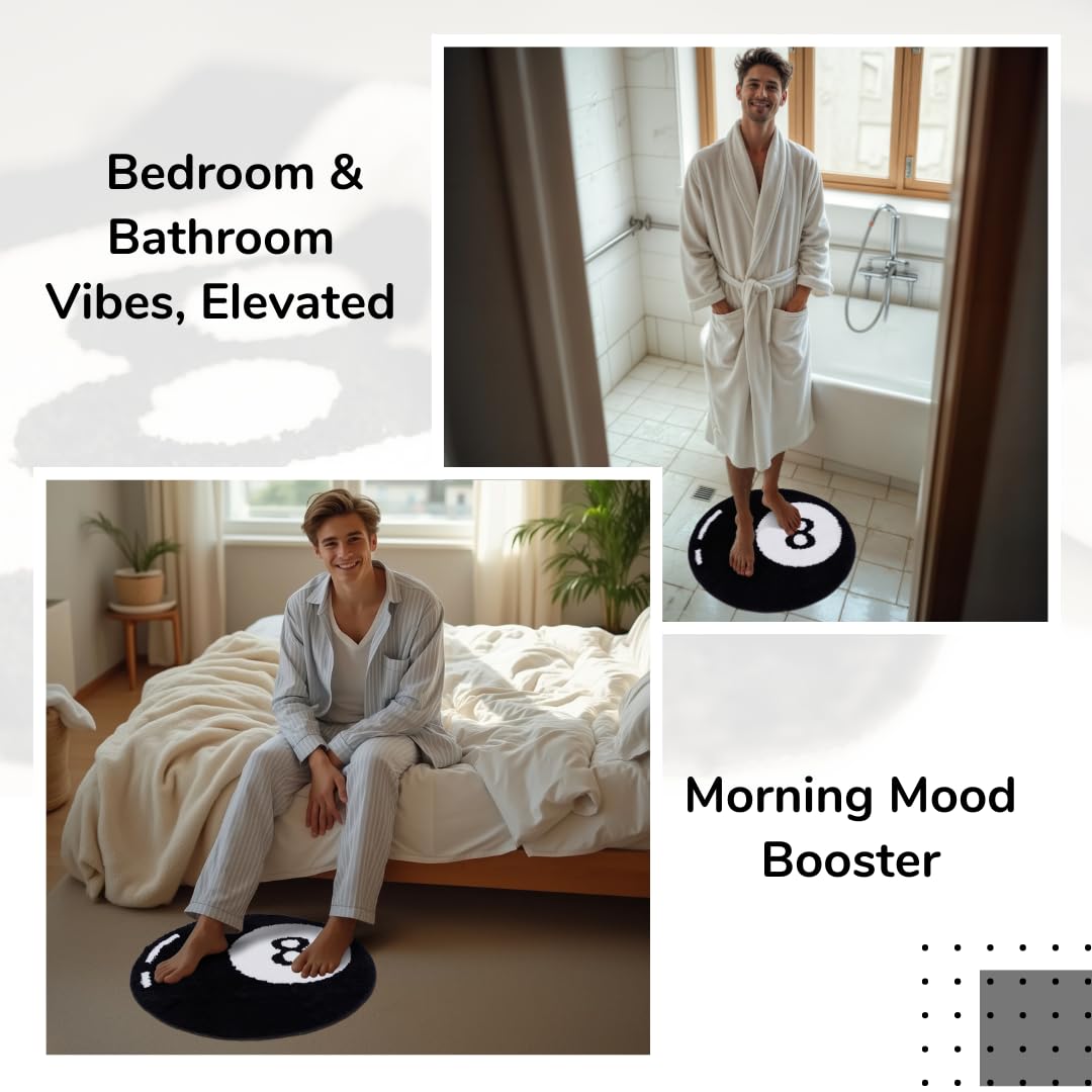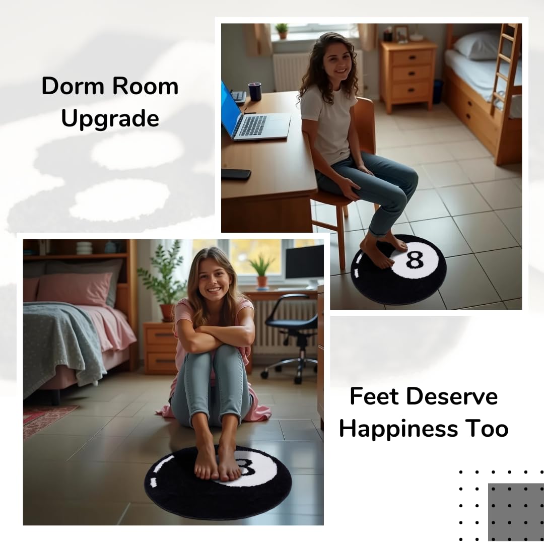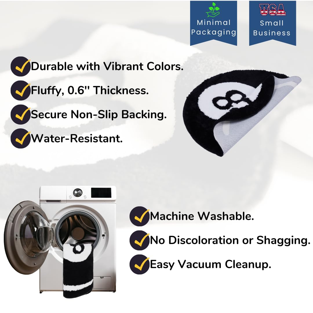 - Soft like a cloud - Sink your toes into the luxurious softness of our Magic Eight Ball Rug. Made with premium quality fluffy materials, this 8ball rug adds a cozy touch to your spaces