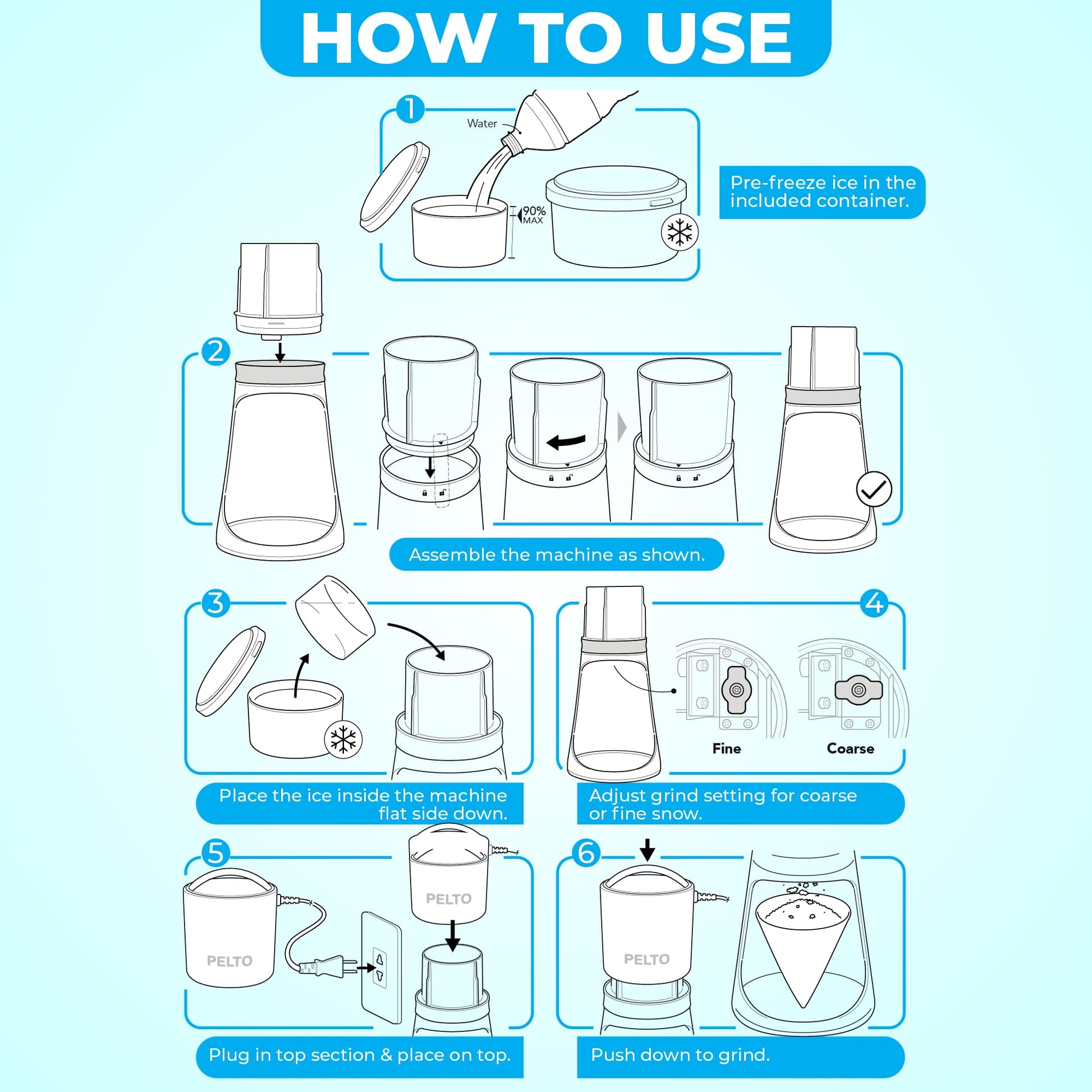 - Easy-to-Use Electric Ice Shaver – Quickly shave ice to fluffy perfection for snow cones or slushies in seconds - adjust setting for desired fluffiness. Includes 4 reusable ice trays so there's always ice in the freezer ready to grind.