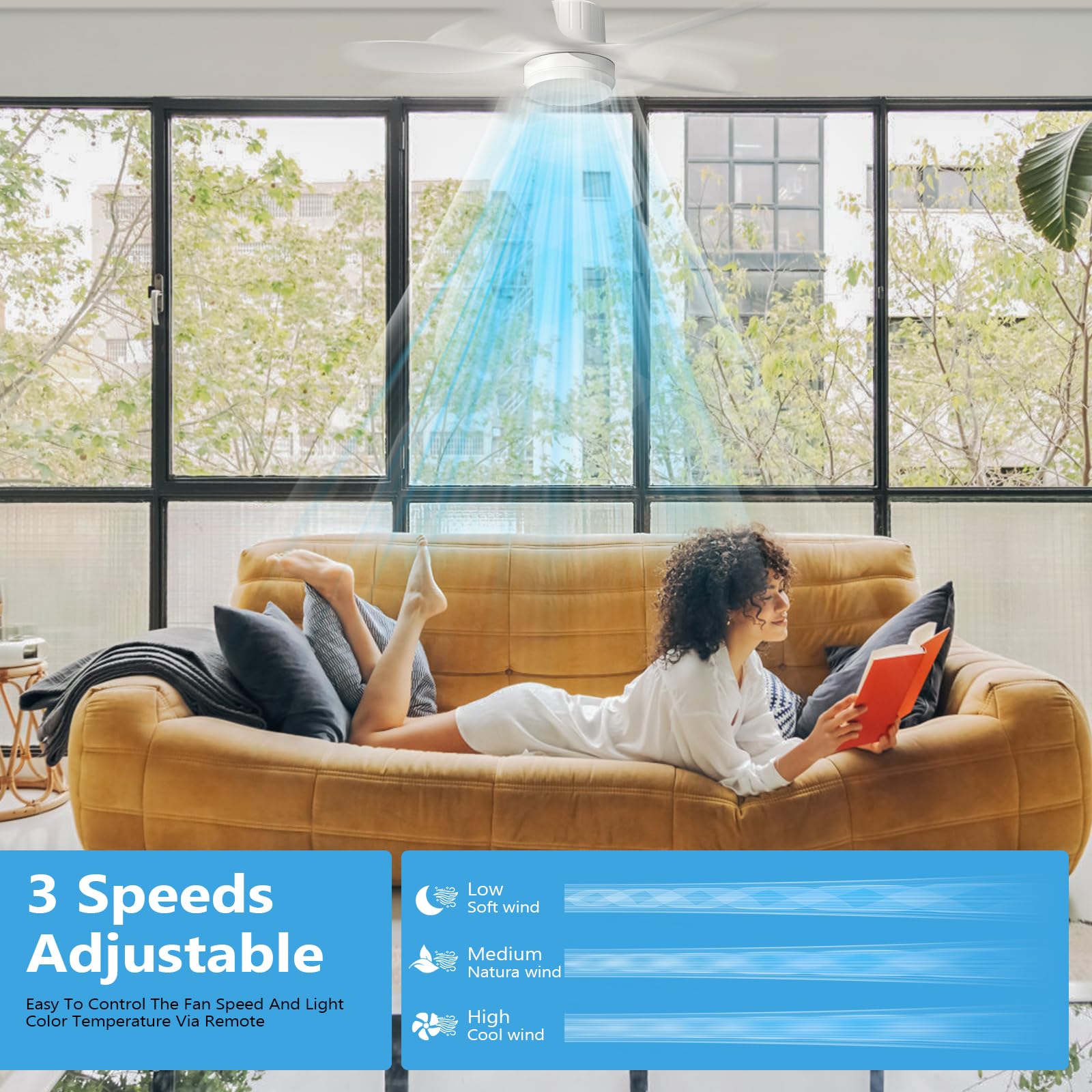 - 【3 Fan Speeds & Adjustable Color Temperature】The ceiling fan light has 3 fan speeds (high/medium/low) that can be adjusted to meet your needs. Socket fan LED light features 1200 lumens of bright light and provides 3 color temperature options, allowing you to switch between warm light, natural light, and cool light to create the desired lighting atmosphere.