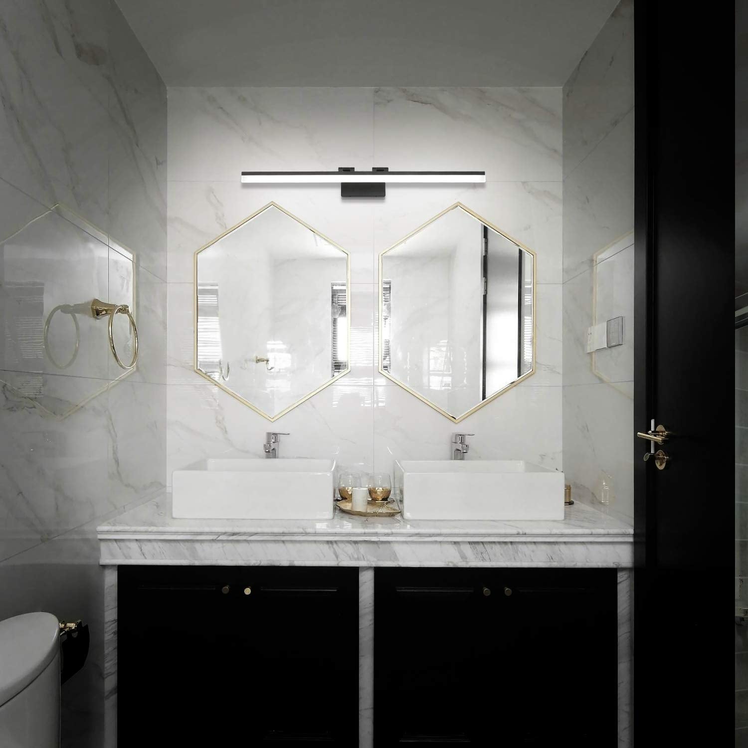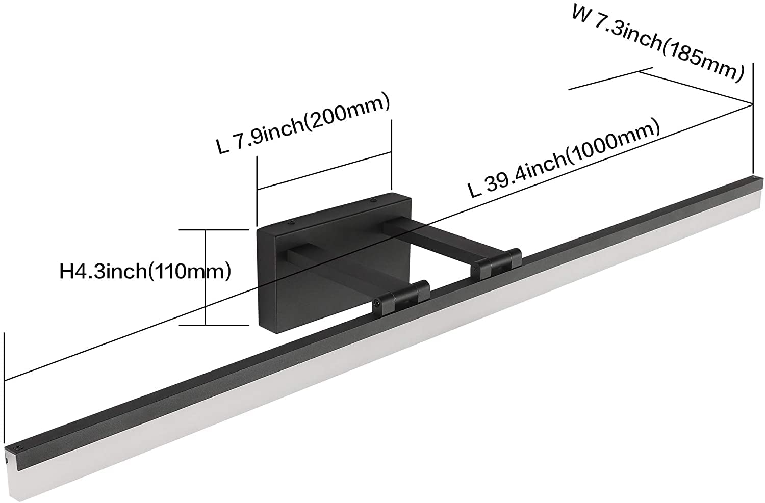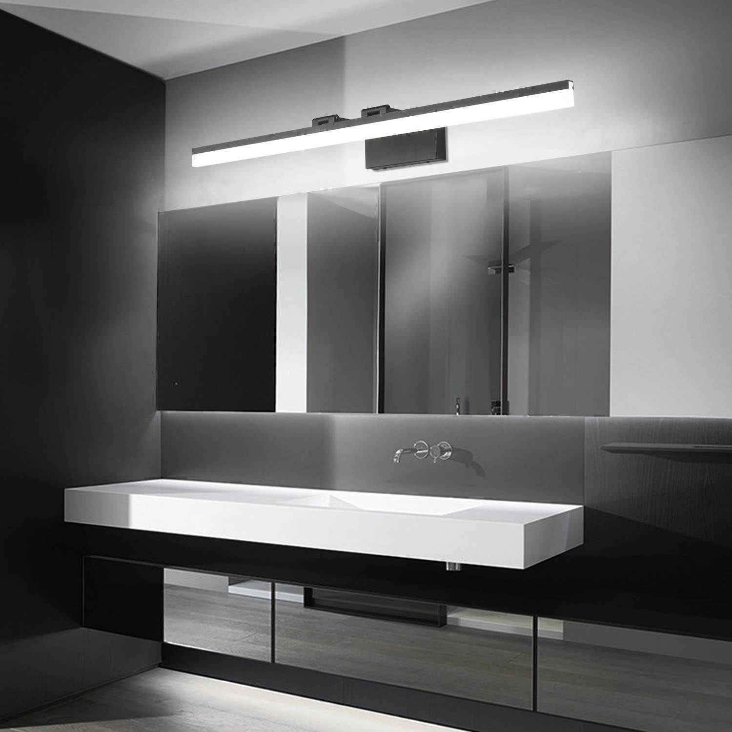 - 4.【ENERGY SAVING】High color rendering 90, LED light technology saves up to 80% electricity. Lifespan up to 50,000hours.Efficient, minimalist, modern, contemporary modern black vanity lights for bathroom. Integrally formed, edge lines clear and smoothly contoured.Cool White 6000K.
