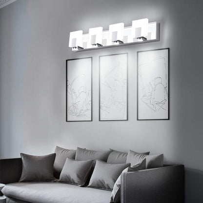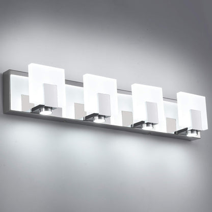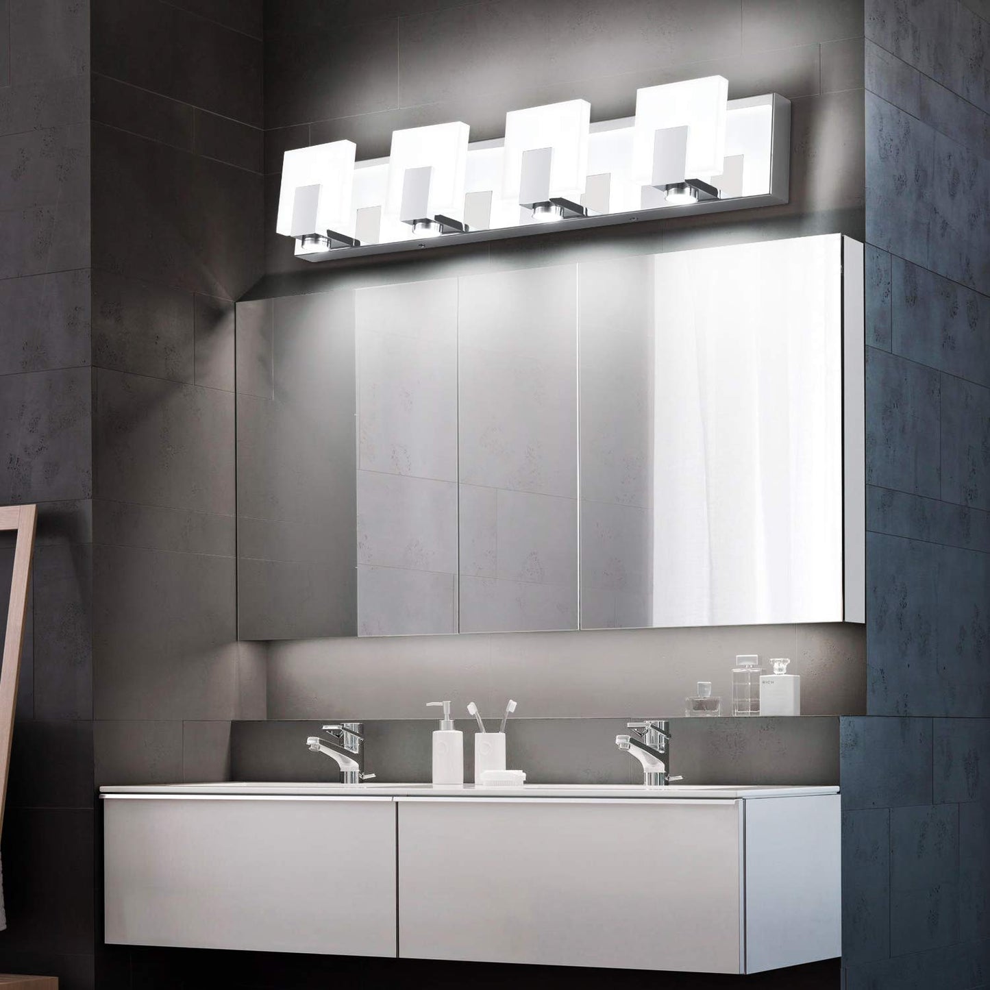 SOLFART Modern Led Bathroom Vanity Lighting Over Mirror Gloss Chrome Finishing 4 Light Vanity Light.