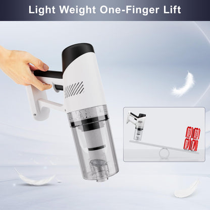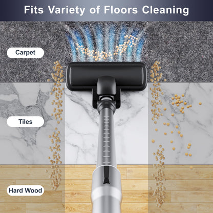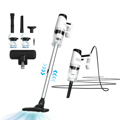 - [Ultra Lightweight & Maneuverable]: -The main motor is only 1.9 pounds and ergonomic handle allow cleaning with just one hand,easily converts from stick vac to a handheld vacuum with 2 versatile attachments. With swivel steering,flexible 180° swivel and 90° up and down allow the corded vacuum cleaner for cleaning in all directions.