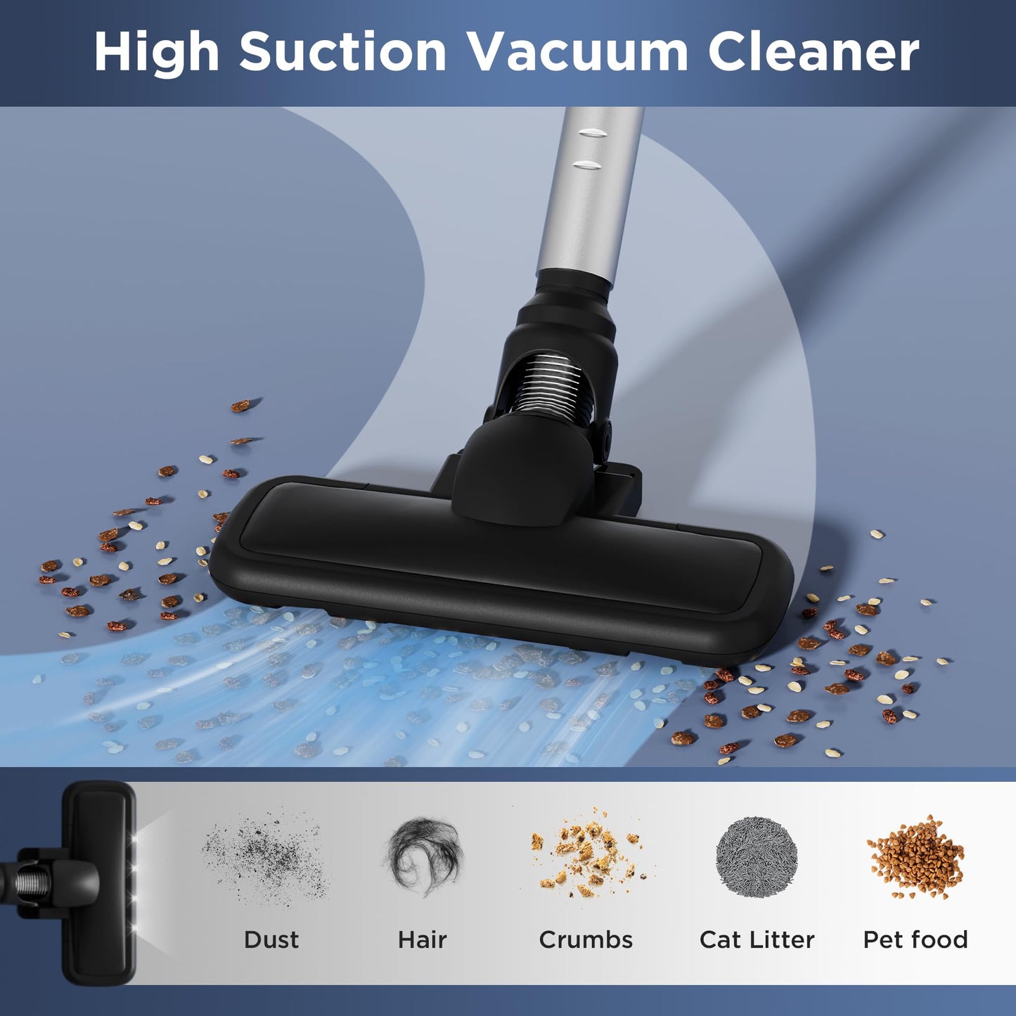 - [Corded Stick Vacuum with Powerful Suction]: -SpeedBoost corded vacuum cleaner is equipped with a strong motor, can generate up to powerful suction, is perfect for hardwood floors, marble floors, tile, low pile carpet, and can easily pick up all kinds of particles like dust, pet hair, pet litter, cereal, etc. Providing the perfect cleaning experience.SpeedBoost will bring you the best quality vacuuming experience ever.