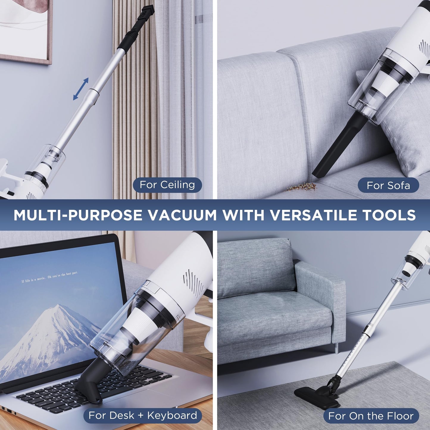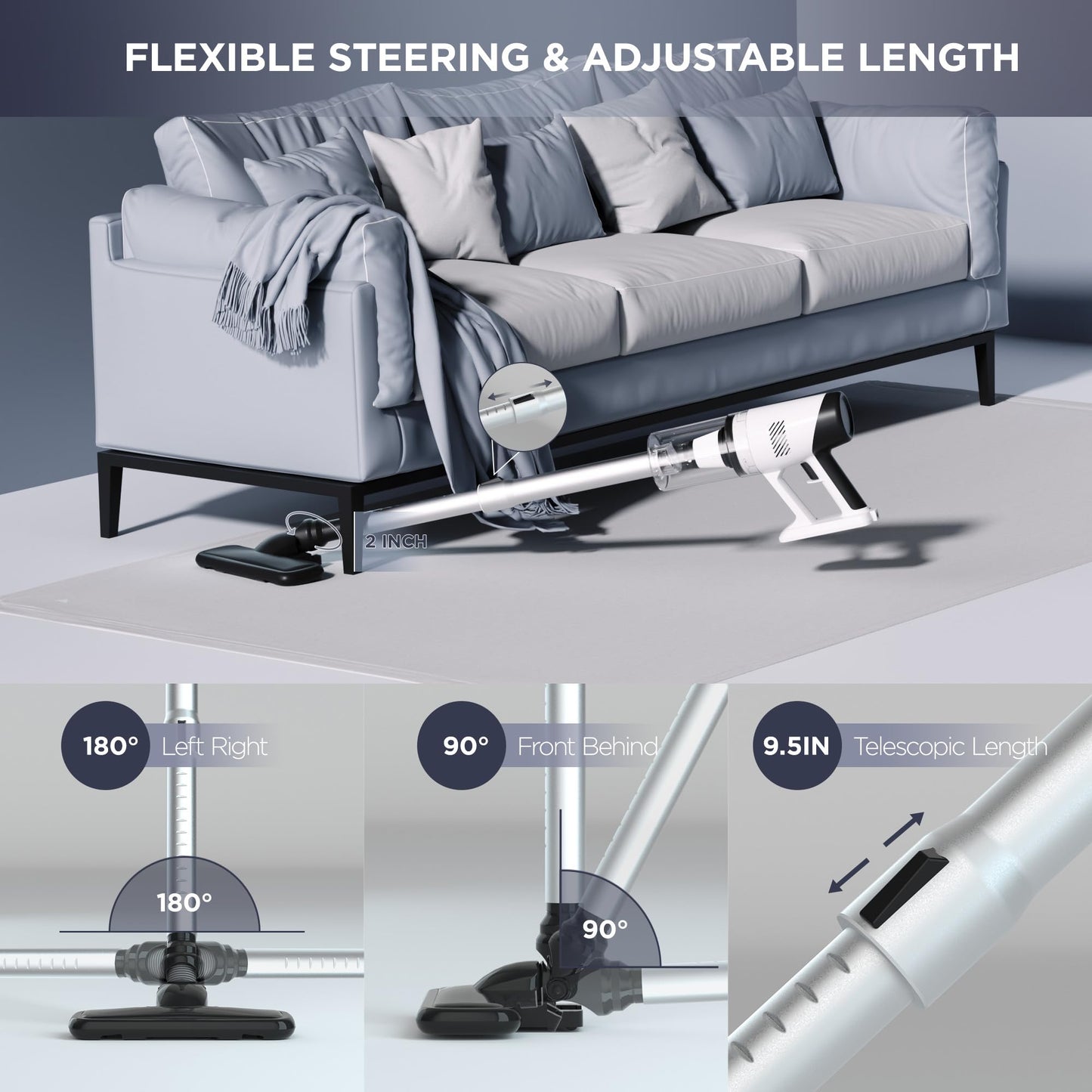- [Multifunctional Scene and Warranty]: -The vacuum comes with a sofa brush and crevice tool, with the retractable Aluminum tube they can be easily assembled into 8 combinations, the sofa brush is perfect for cleaning sofas, hard surface furniture, curtains, etc,and the crevice tool is suitable for car crevices and various small corners, meet all your cleaning needs.SpeedBoost promises to provide a one-year warranty service for our vacuum cleaner. If you have any questions, please contact us directly.