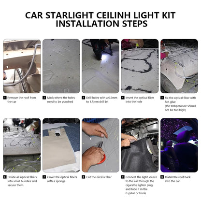 - APPLICATION AND PACKING LIST: The car LED lights are suitable for all types of cars, such as cars, trucks, RVs, allowing you to experience the atmosphere of Rolls Royce. At the same time, our starlights for ceiling can also be used as your home interior decoration (need to purchase home adapter separately). List: Light source engine*1, Fiber optic*9.8ft*300pcs, PG connector*1, Cigarette lighter*79in*1, Remote control, User's manual*1.(Support customized fiber optic length quantity, cigarette lighter wire length, home adapter
