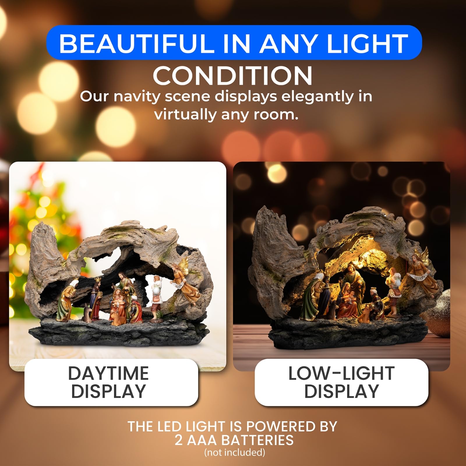 - FESTIVE ILLUMINATION: Create a warm and inviting ambiance with the built-in LED light that beautifully illuminates the indoor Nativity Sets, making it a captivating centerpiece for your Christmas celebrations.