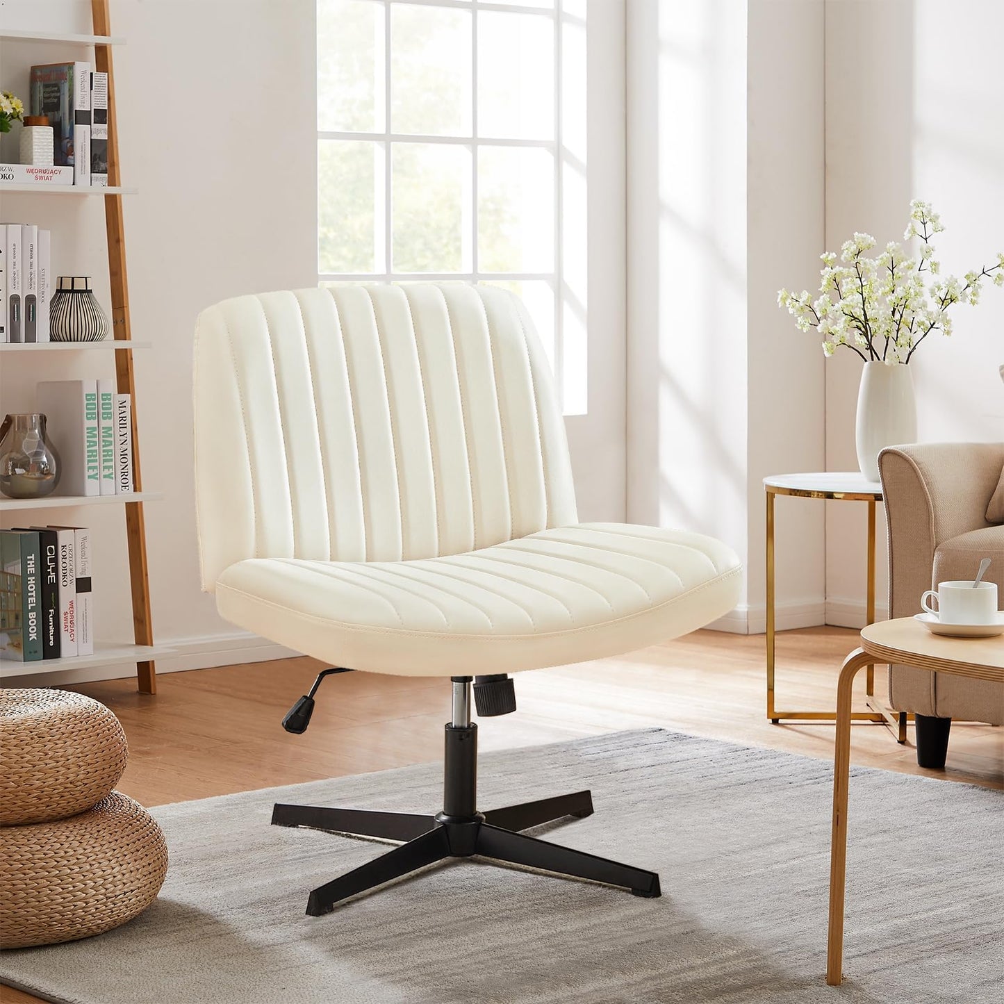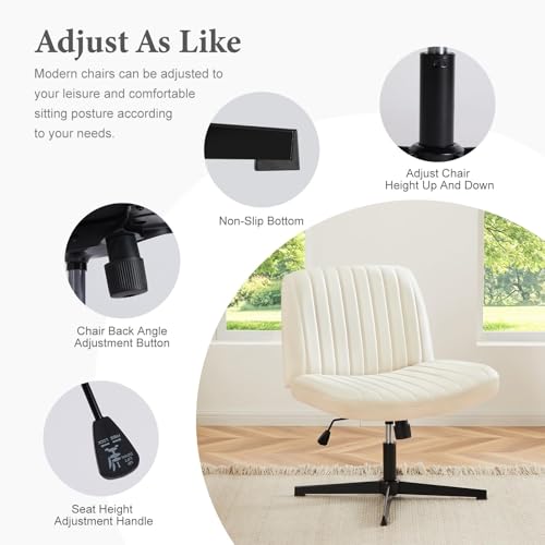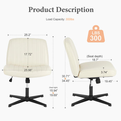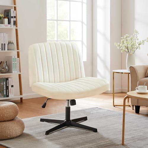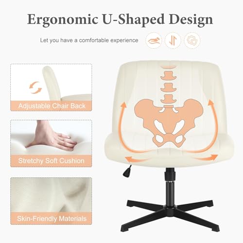 Sweetcrispy Criss Cross Chair Legged, Armless Office Wide Desk Chair No Wheels, PU Leather Swivel Vanity Height Adjustable Fabric Modern Computer Task Seating for Home - Beige