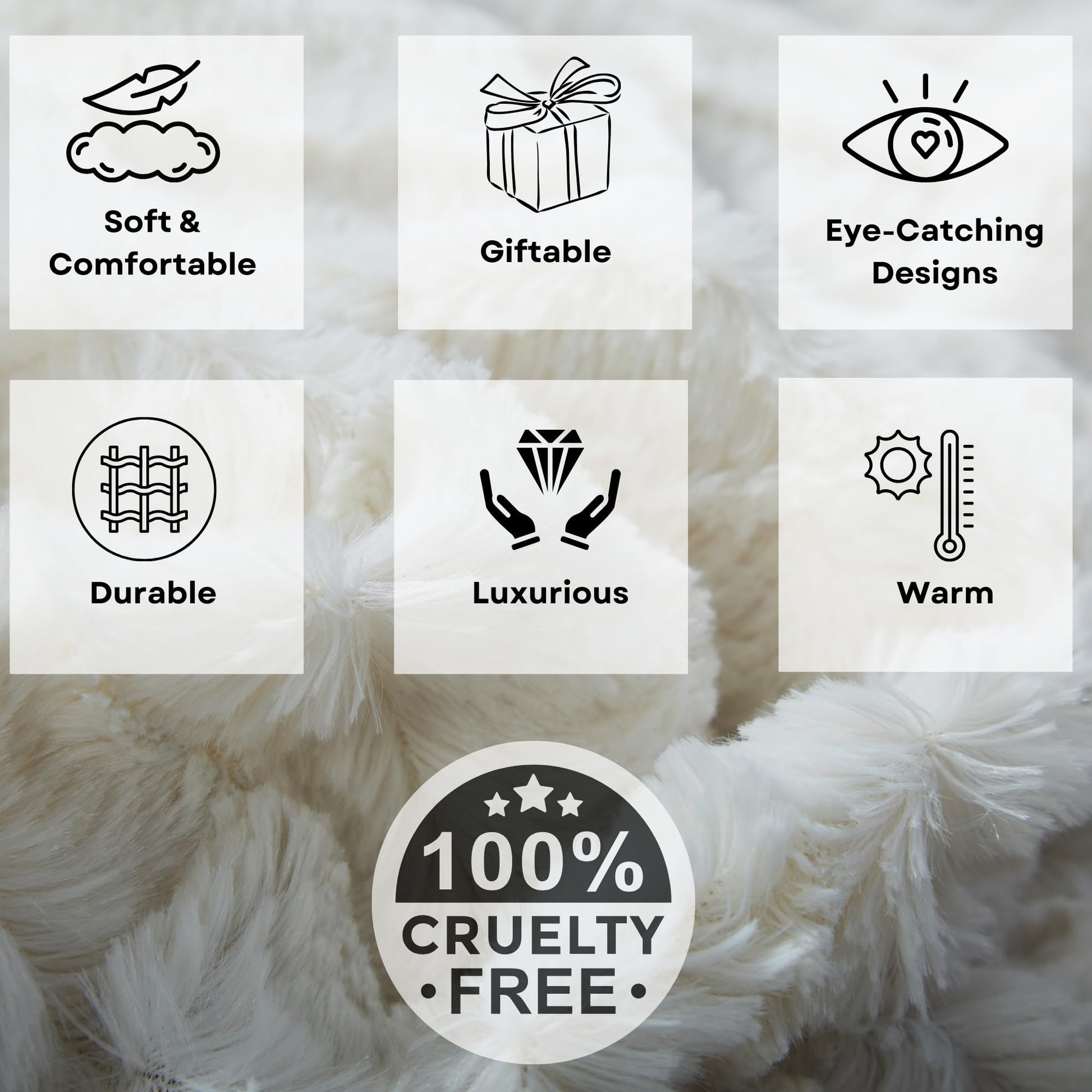 Details: Snuggle up by the fire or in bed with our amazingly warm cruelty free faux fur throw. Perfect for freezing nights to overnight guest and everything in between. This elegant cream throw will add a elegant look to any room