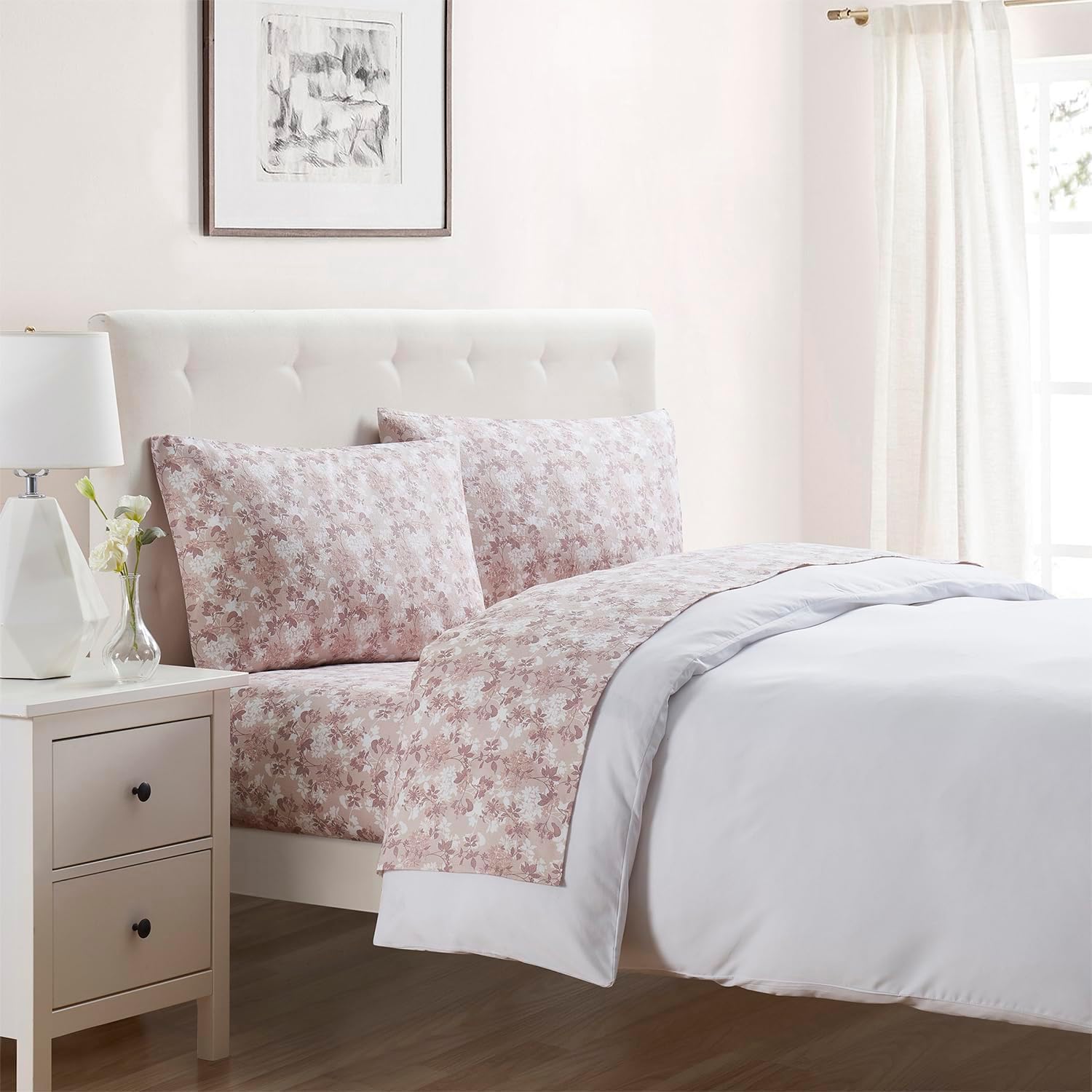 Tahari Home - Queen Sheets, 4-Piece Cotton Flannel Bedding with Matching Pillowcases, Brushed for Extra Softness, Cozy Home Decor (Mora Blush, Queen)