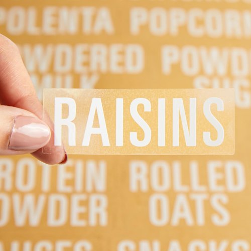 - All Caps Lettering: Forget messy handwriting, our food storage labels feature easy-to-read white all caps font on a clear background for quick identification of ingredients while baking or cooking