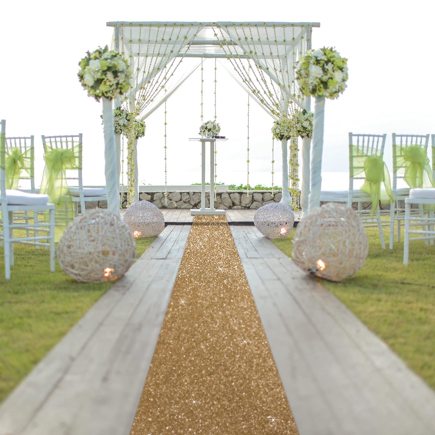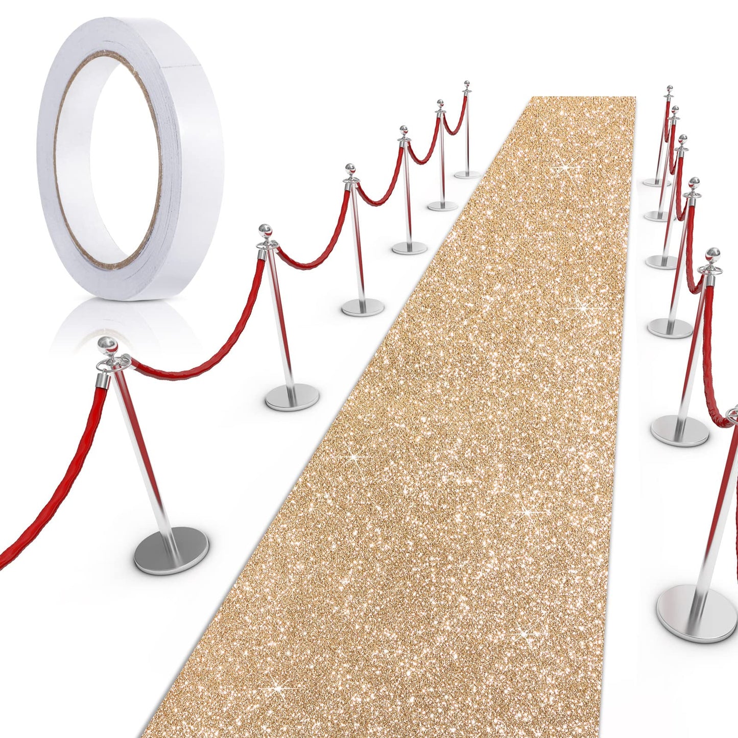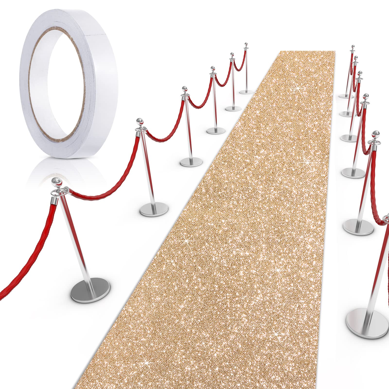 Tatuo Carpet Runner Runway Rug 55 GSM Thickness with Carpet Tape for Prom Graduation Wedding Party Outdoor Indoor Hallway Rug(4.6 x 60 Feet,Glitter Gold)