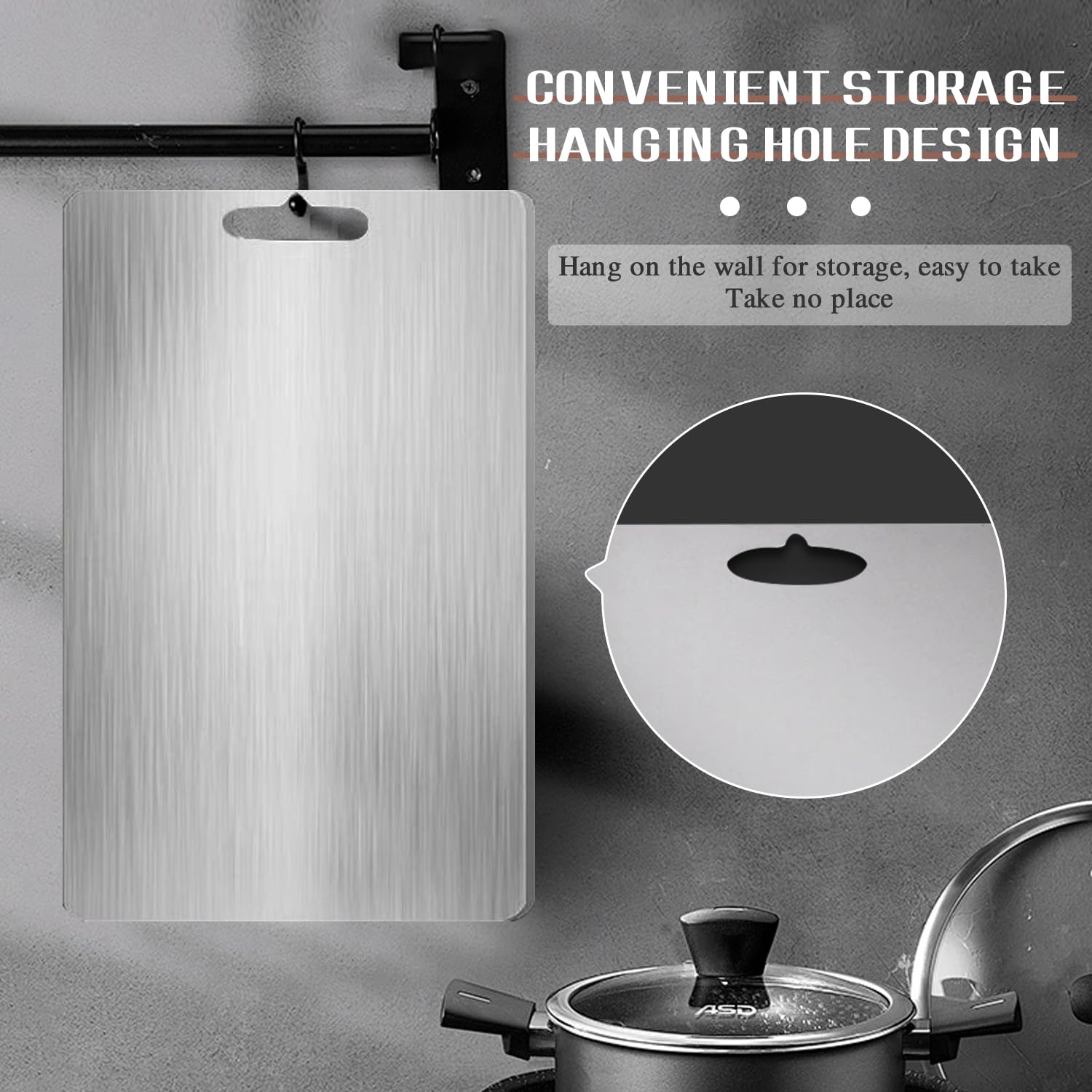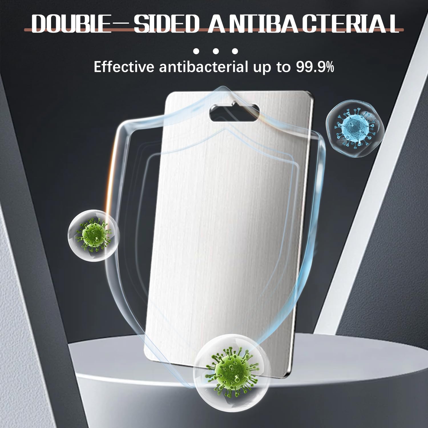 - 【Superior Hygiene and Protection】 The Qinux CuTium Cutting Board is crafted with 100% titanium, featuring a Hygiene surface that reduces harmful by 99% compared to traditional wooden or plastic boards. Its non-porous design ensures a cleaner, safer cooking experience, making it perfect for health-conscious families. Protect your food and kitchen with the ultimate hygiene solution.