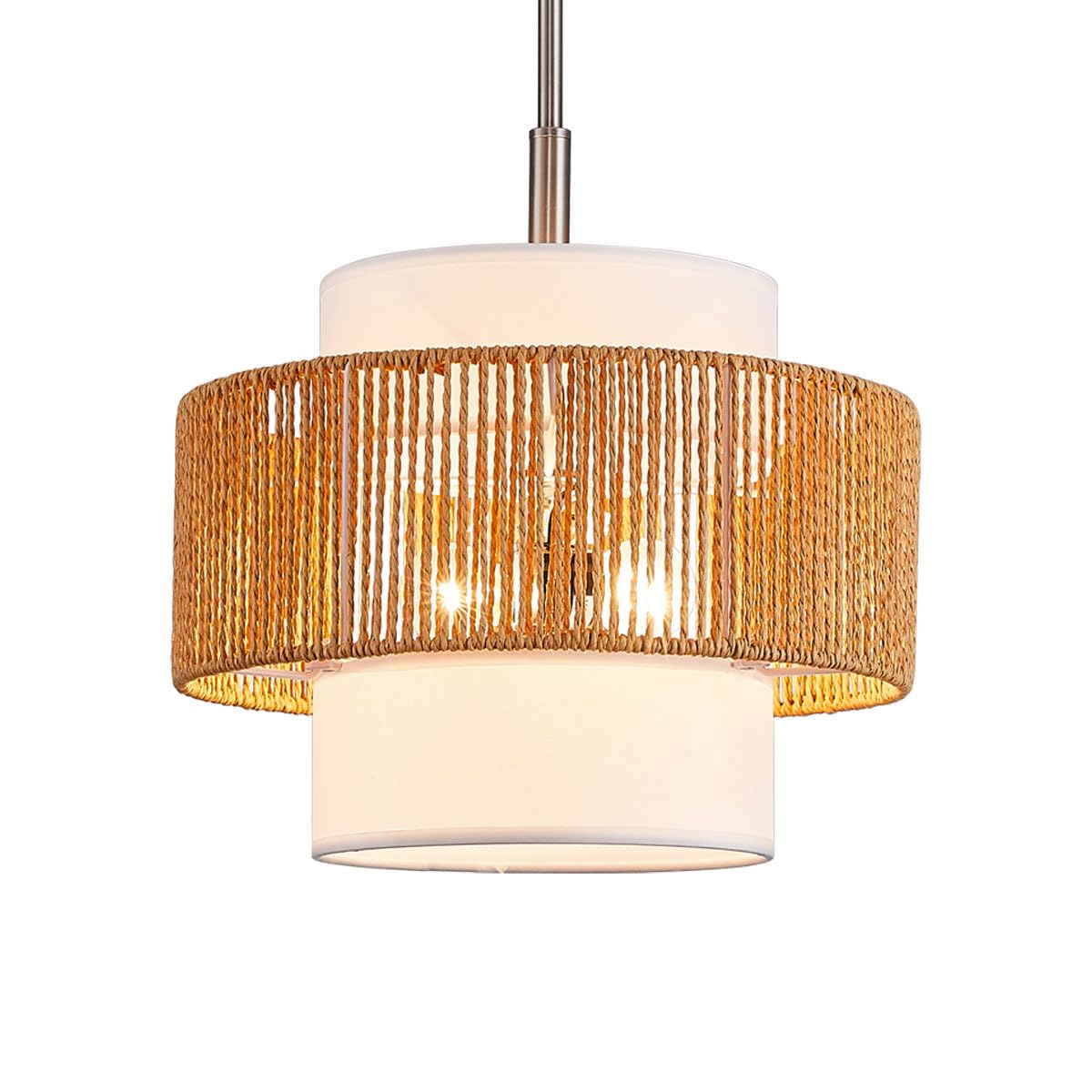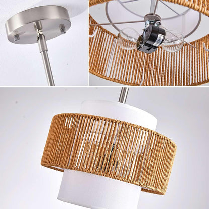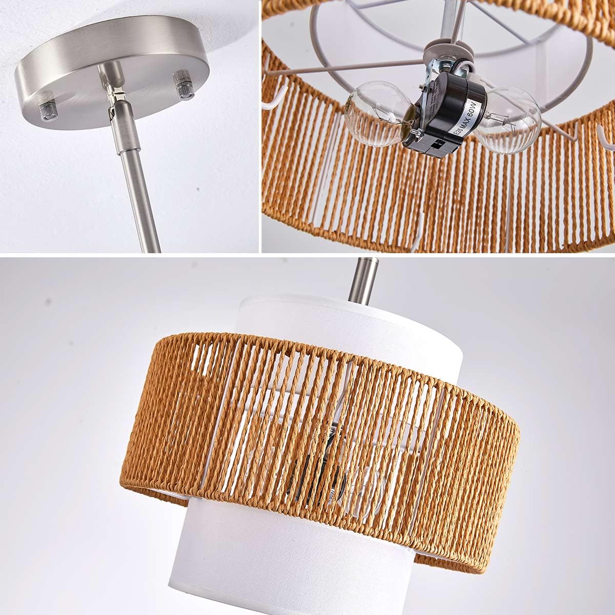 TELAFLY Rattan Drum Chandeliers Light Fixtures,Farmhouse 2 Light Boho Pendant Light Rustic Hand Woven Lighting for Dining Room Kitchen Island Living Room Bedroom,Brushed Nickel Finish Metal 12.5''