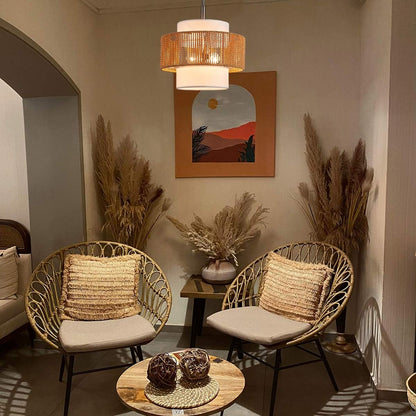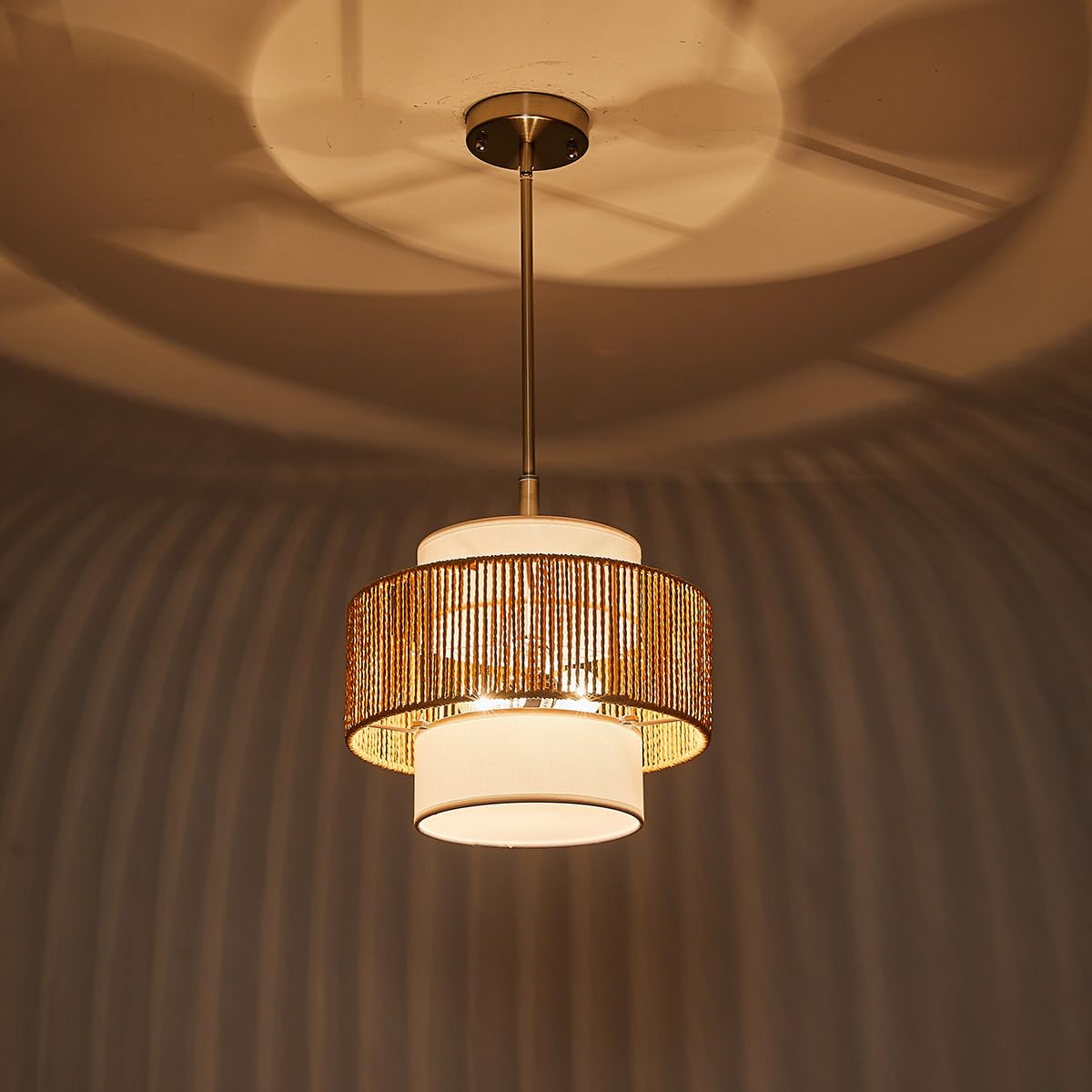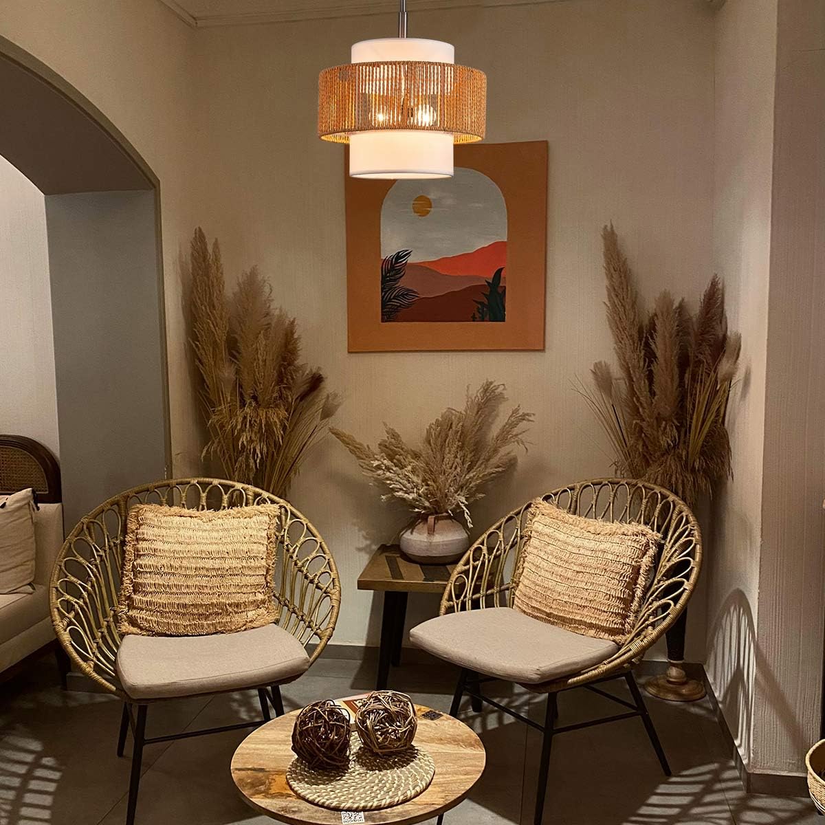 - 【Rattan Design】The rattan drum chandeliers decorated coastal and bohemia style,The light shines gently through the woven rattan to make your room more warm and elegant.