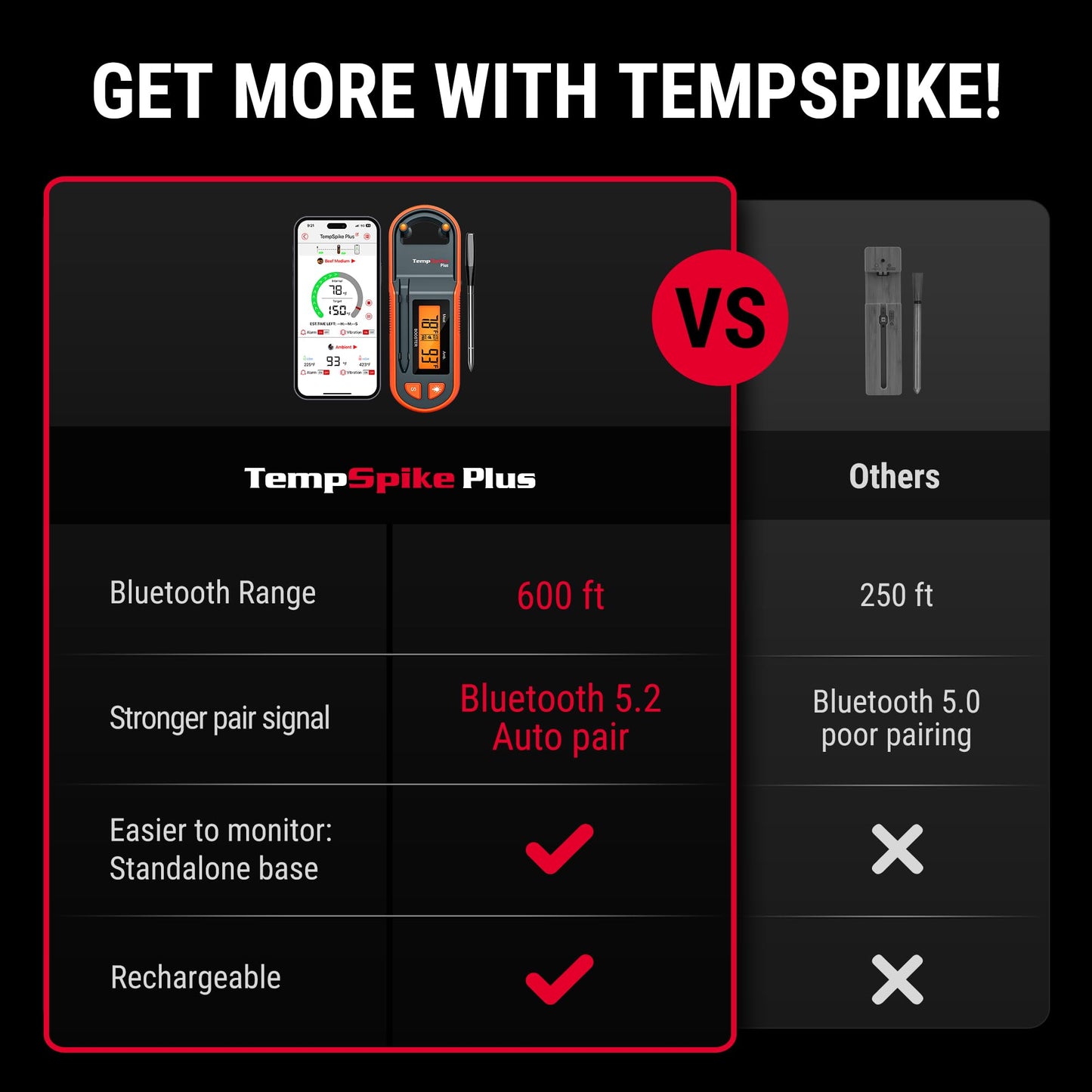 TempSpike 600 ft Wireless Meat Thermometer with Ultra-Thinner Probe, Bluetooth Meat Thermometer with Standalone LCD Booster for BBQ Grill Smoker Rotisserie Sous Vide