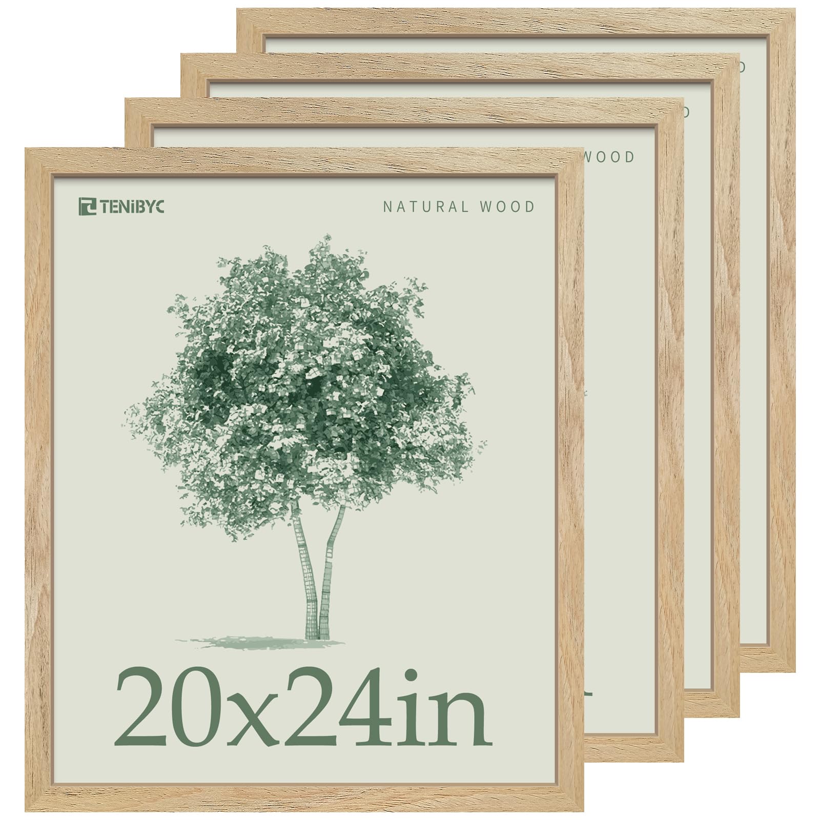 TENIBYC 20x24 Picture Frame 4 Pack, Textured Natural Solid Wood Poster Frame, Wall Gallery Photo Frame