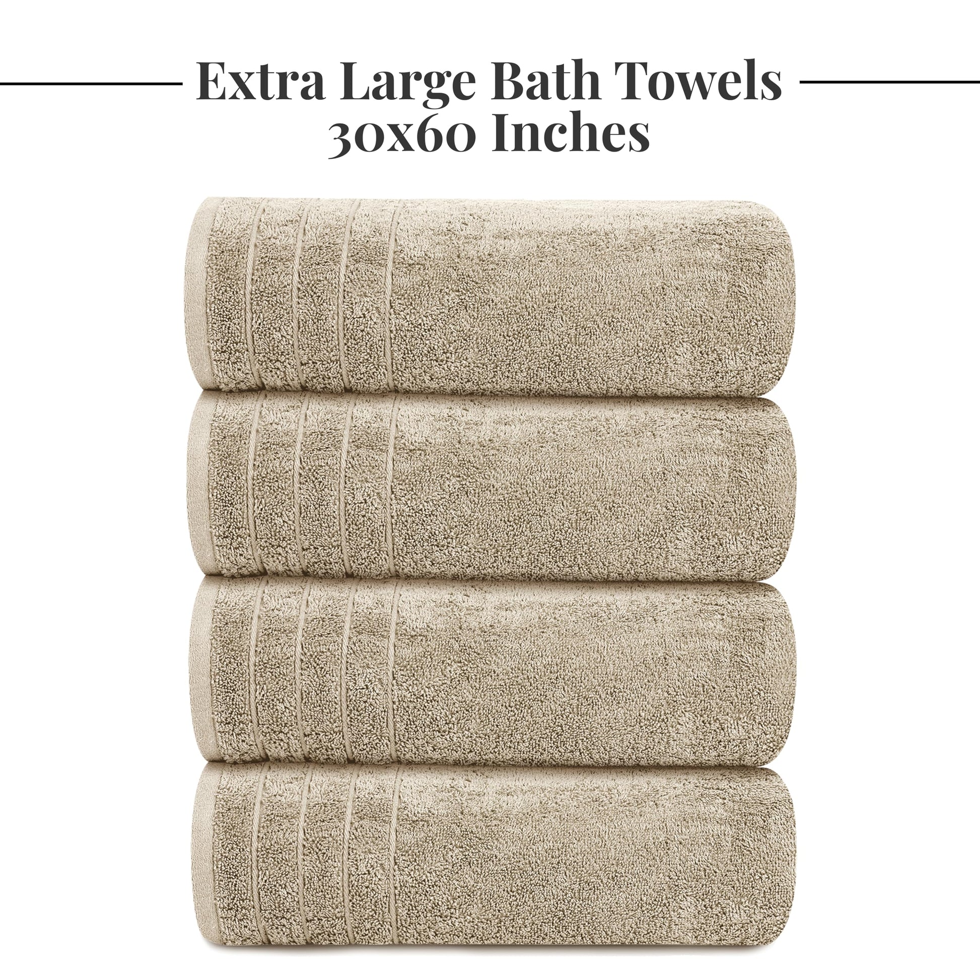 Tens Towels Pack of 4 Extra Large Bath Towels 30 x 60 Inches, 100% Cotton, Larger & Lighter Weight, Quicker to Dry, Super Soft and Absorbent, Perfect for Bathroom, Beige