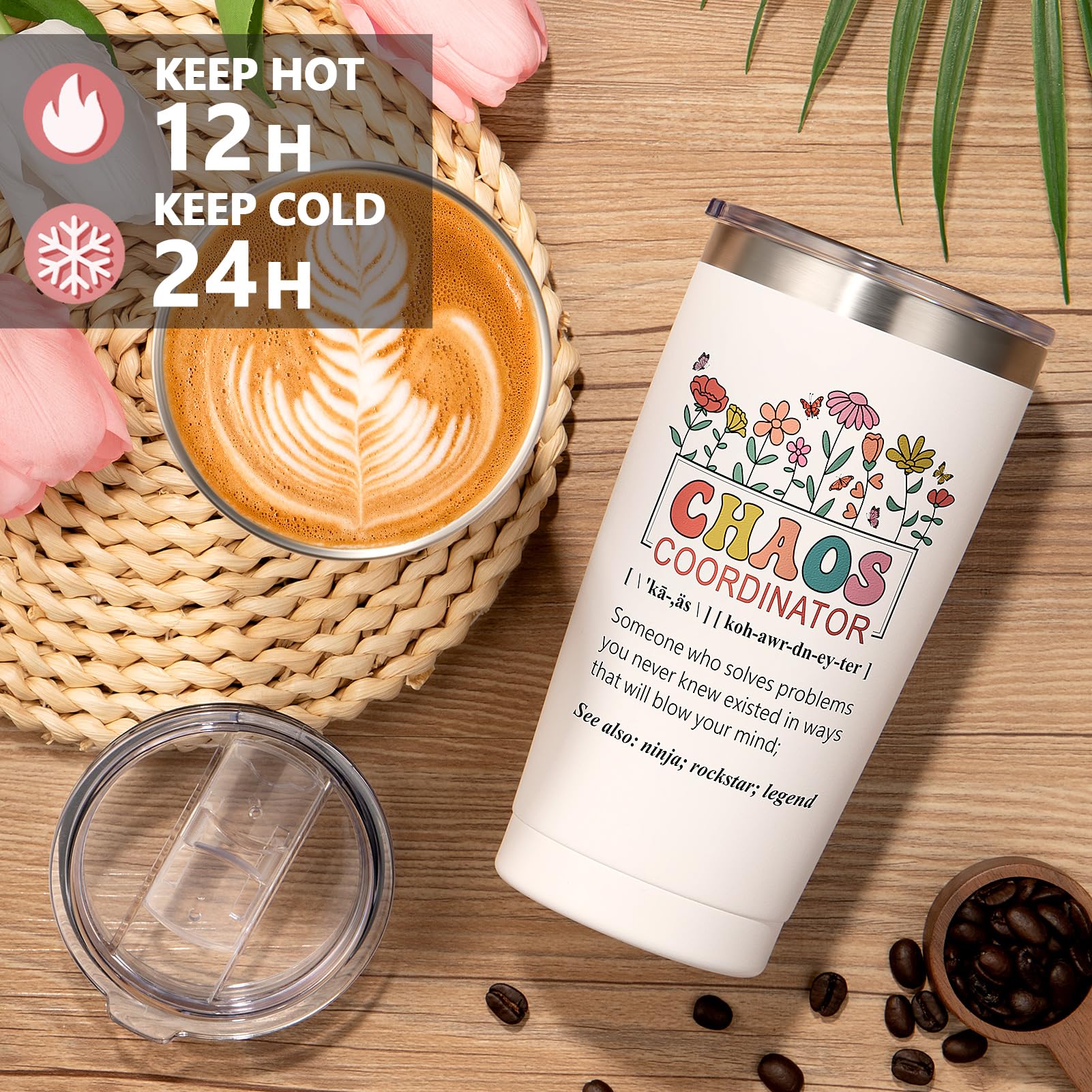- INSULATED VACUUM TUMBLER: Made of 18/8 food-grade sturdy stainless steel, with double-walled vacuum insulation, this sweat-free 20oz insulated tumbler with lid can preserve beverage temperature up to 24h for cold & 12h for hot, great for iced coffee, tea, wine, juice, champagne, smoothies, sodas, milkshake,etc; Sweet quote print shows your admiration & thankfulness, making it a unique birthday gifts for coworkers Christmas gifts, boss day gifts for women,admin professional day gifts