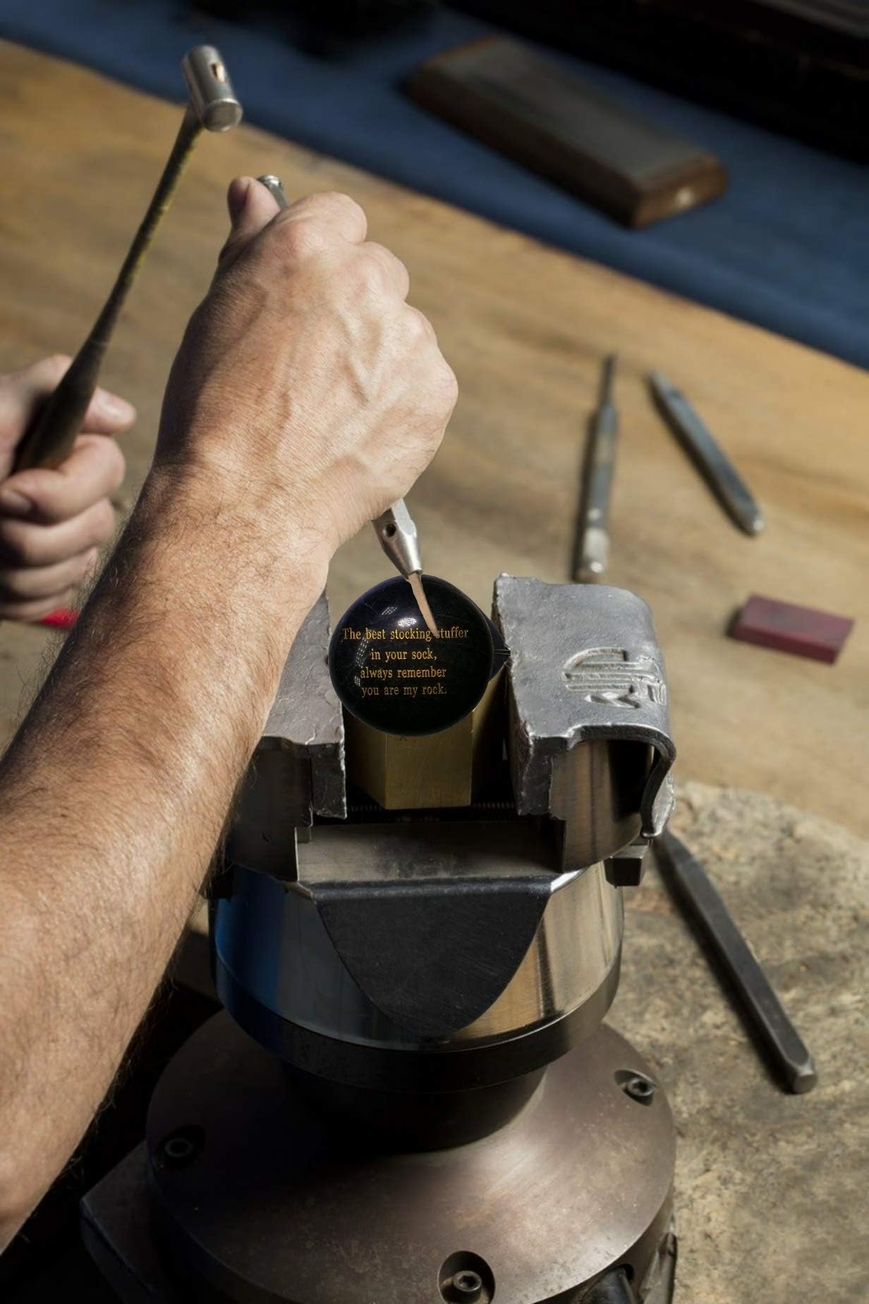 Details: Who is YOUR rock? The best stocking stuffers you can get for a limited time, as Christmas stocking stuffers for men and stocking stuffers for women, we only make 500 of these engraved stones each year. This beautiful engraved stone is the best gift you can give to someone who has always been there for you, someone you can always count on. This endearing stone has been hand engraved with an everlasting golden message that will last forever. The Best Stocking Stuffer! This Engraved Polished Black Rock sends a sweet message to your loved ones and friends. "The best stocking stuffer in your sock, Always remember, you are my rock." Makes a great and thoughtful stocking stuffer gift to your friends, family, and loved ones.