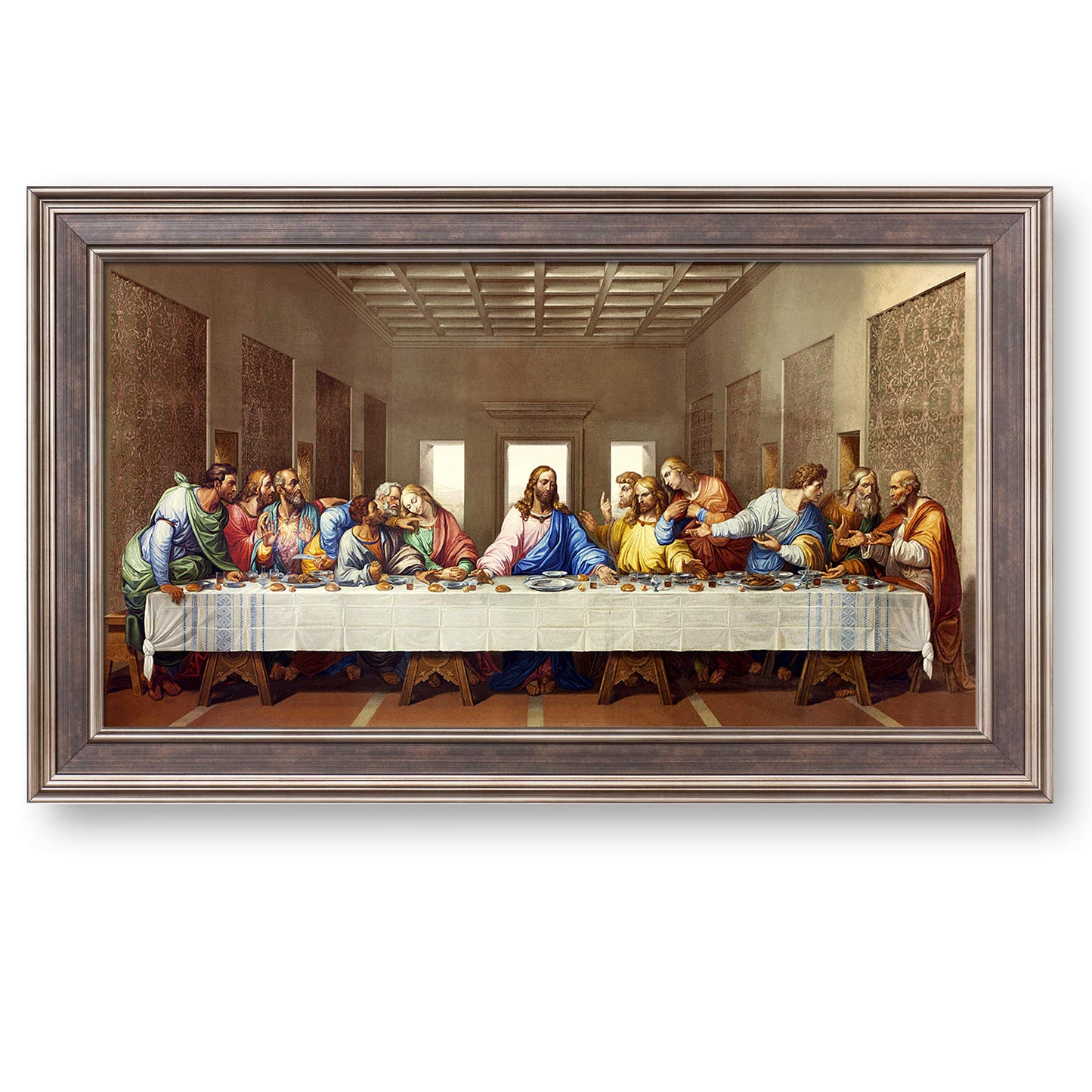 The Last Supper by Leonardo Da Vinci The World Classic Art Reproductions,Giclee Prints Framed WallArt for Home Decor,Image Size:24x12 inches,Champagne Frame With Texture Framed Size:27.6x15.6 inchs