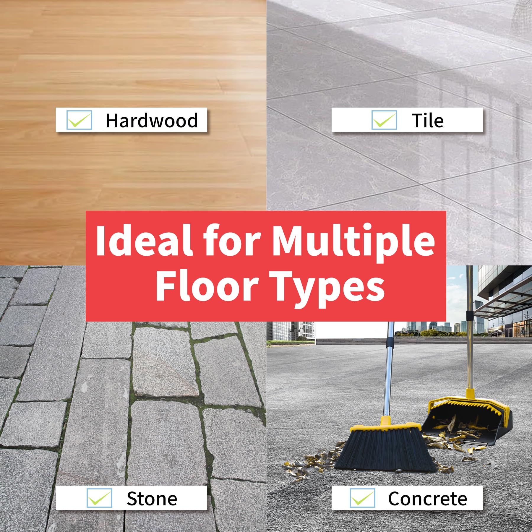 - Upgraded Broom and Dustpan Set: This iteration of the broom and dustpan set that won't come loose uses advanced PowerThread technology and upgrades 2 more threads for easy tightening. The pole is now more stable and sturdy than before. And the service life of the angle broom is twice as long as the previous brooms dustpans, according to laboratory data.