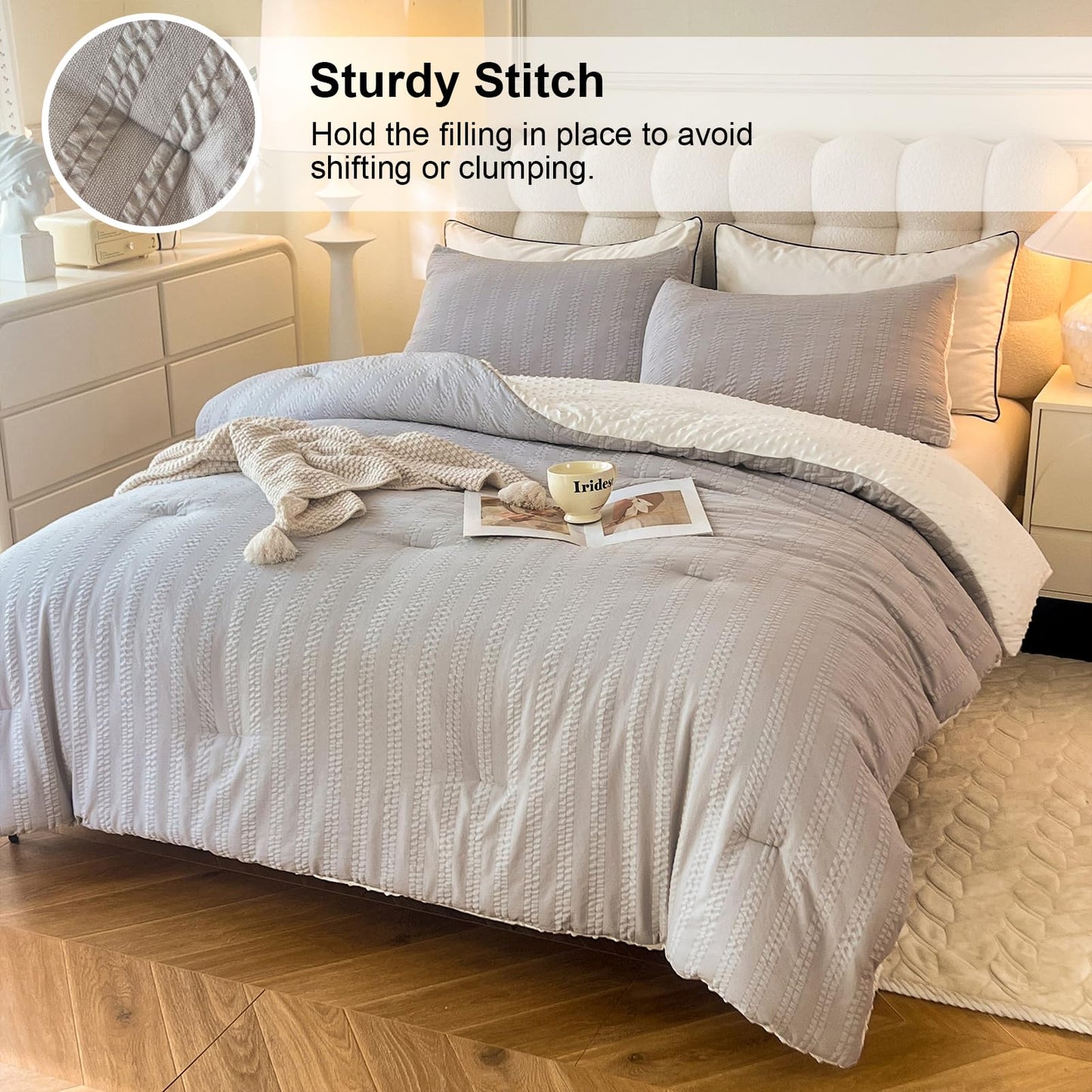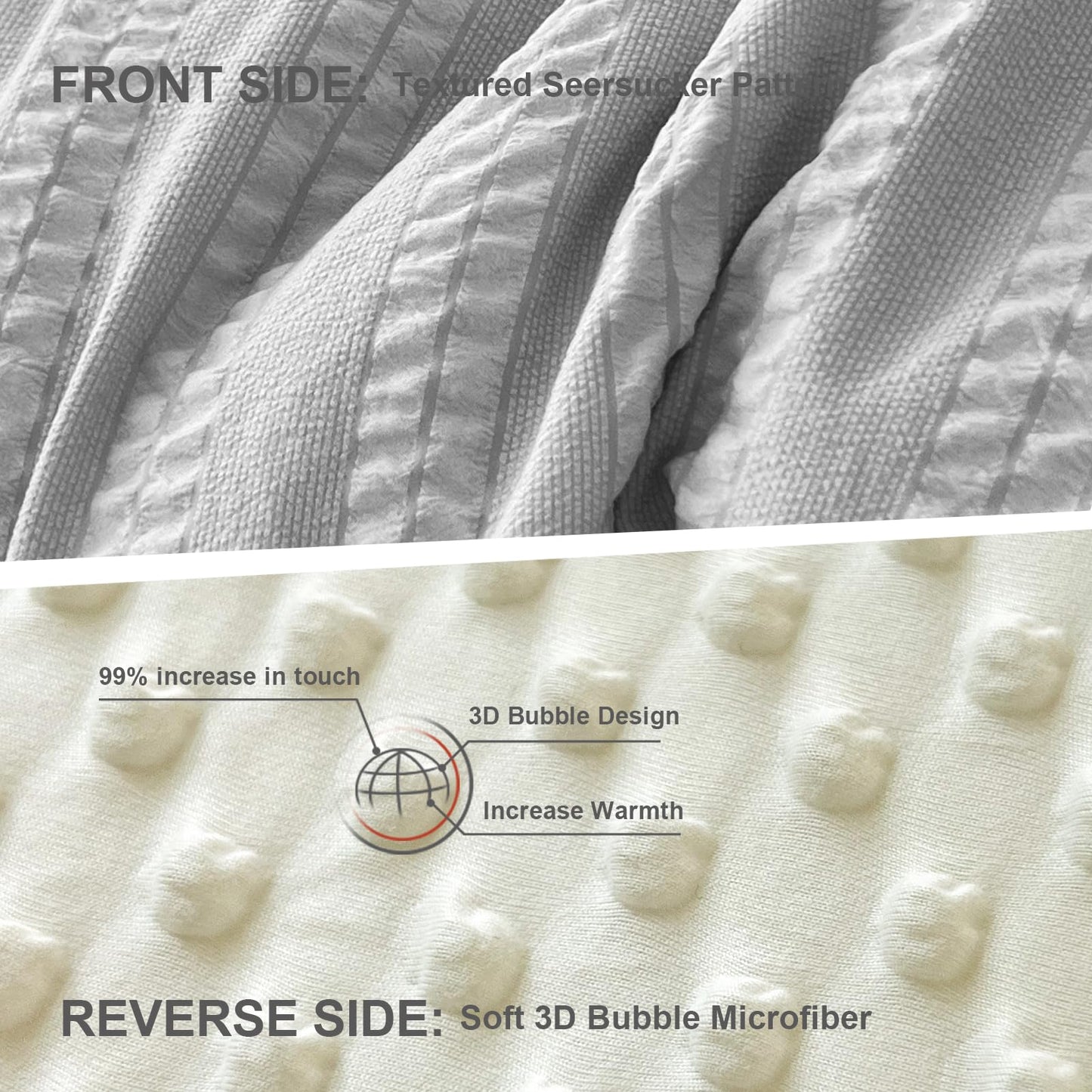 - Distinctive Design: Features a dual-sided design with elegant and exquisite stripe seersucker on one side (A-side) and 3D knitted bean texture fabric on the other (B-side), which is beautiful and comfortable
