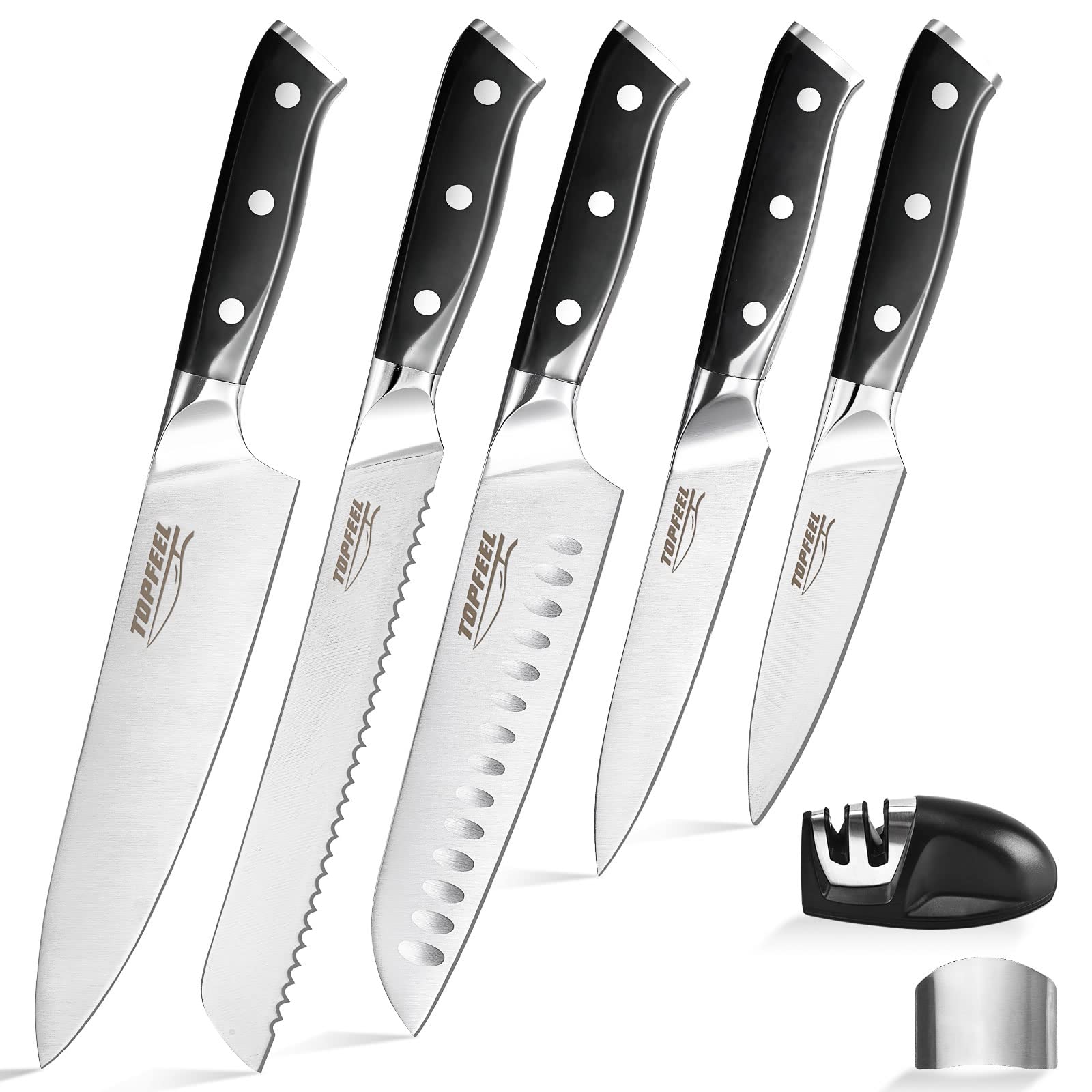 Topfeel Professional Chef Knife Set 5PCS, 3.5-8 Inch Set Kitchen Knives German High Carbon Stainless Steel Sharp Knife, Knives Set for Kitchen with Ergonomic Handle