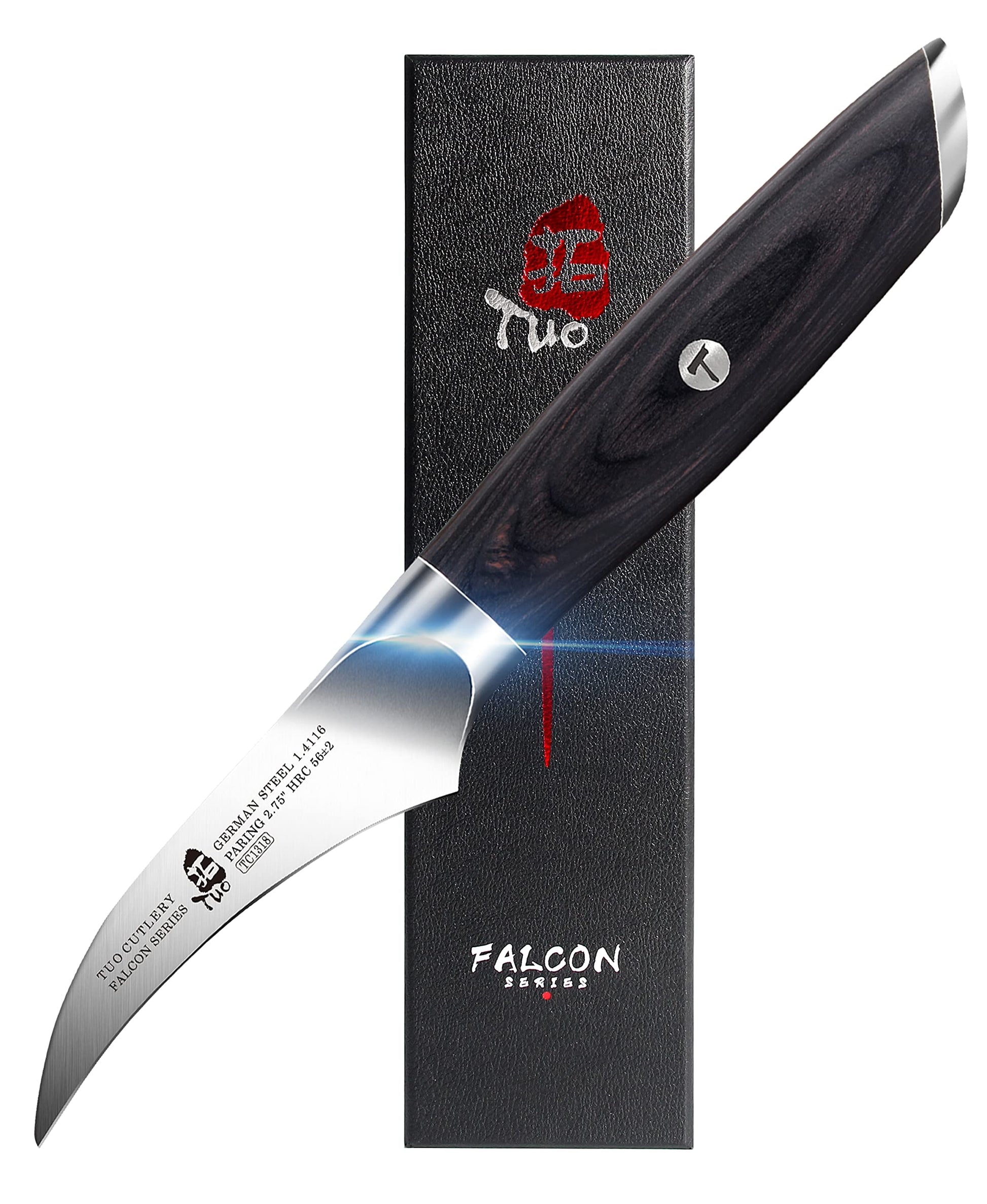 TUO Bird Beak Paring Knife - 2.75" Curved Paring Knife - High Carbon German Stainless Steel - Pakkawood Handle with Gift Box - Falcon Series