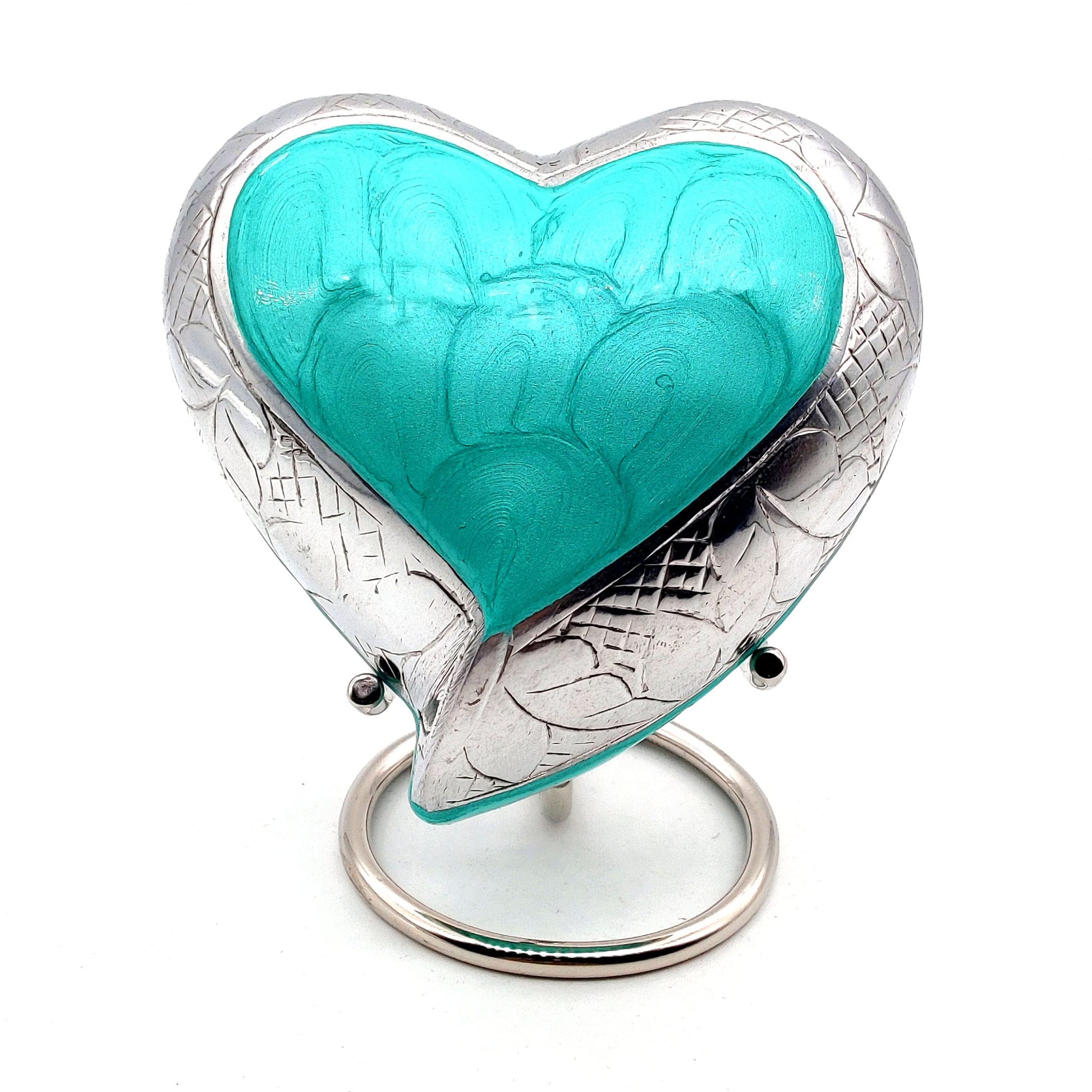 TURKESH Heart Keepsake Urn - Mini Ash Urn Small Handcrafted Cremation Urn for Ashes - Tribute to Your Loved One - Perfect for Adults & Infants with Free Premium Velvet Box & Display Stand (TURKESH)