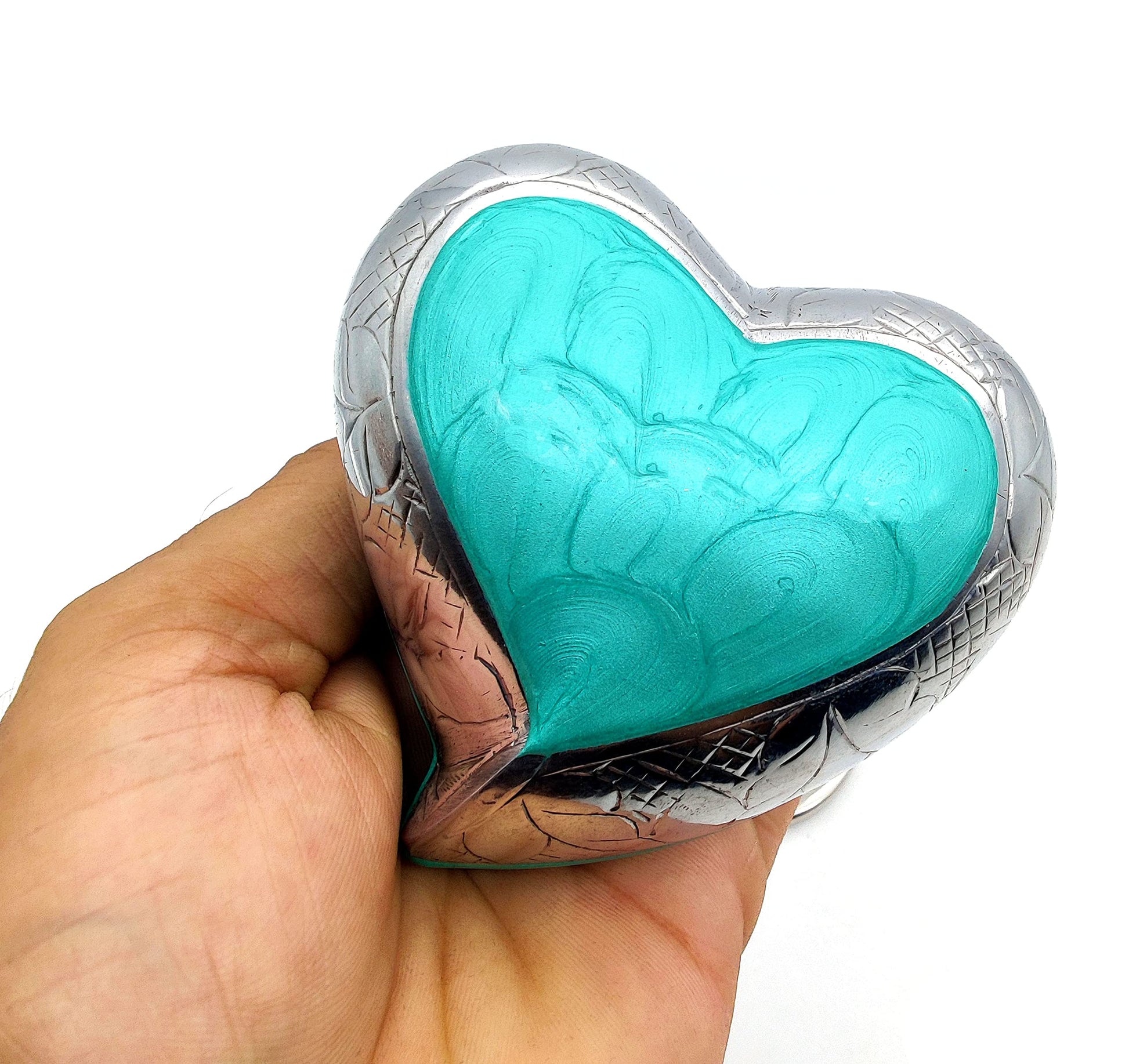 - These beautiful small urn heart will honor your loved one forever.Handmade Keepsake Urn for Human Ashes - Cremation Urn for Ashes | Pet Urns for Dog Ashes | Memorial Cat Urn | This handcrafted hard keepsake heart urn is beautifully finished by a skilled craftsmen. There is a round disc sealed with at the back of the keepsake. This threaded lid can be easily open and close for secure fit and ashes added with a funnel.