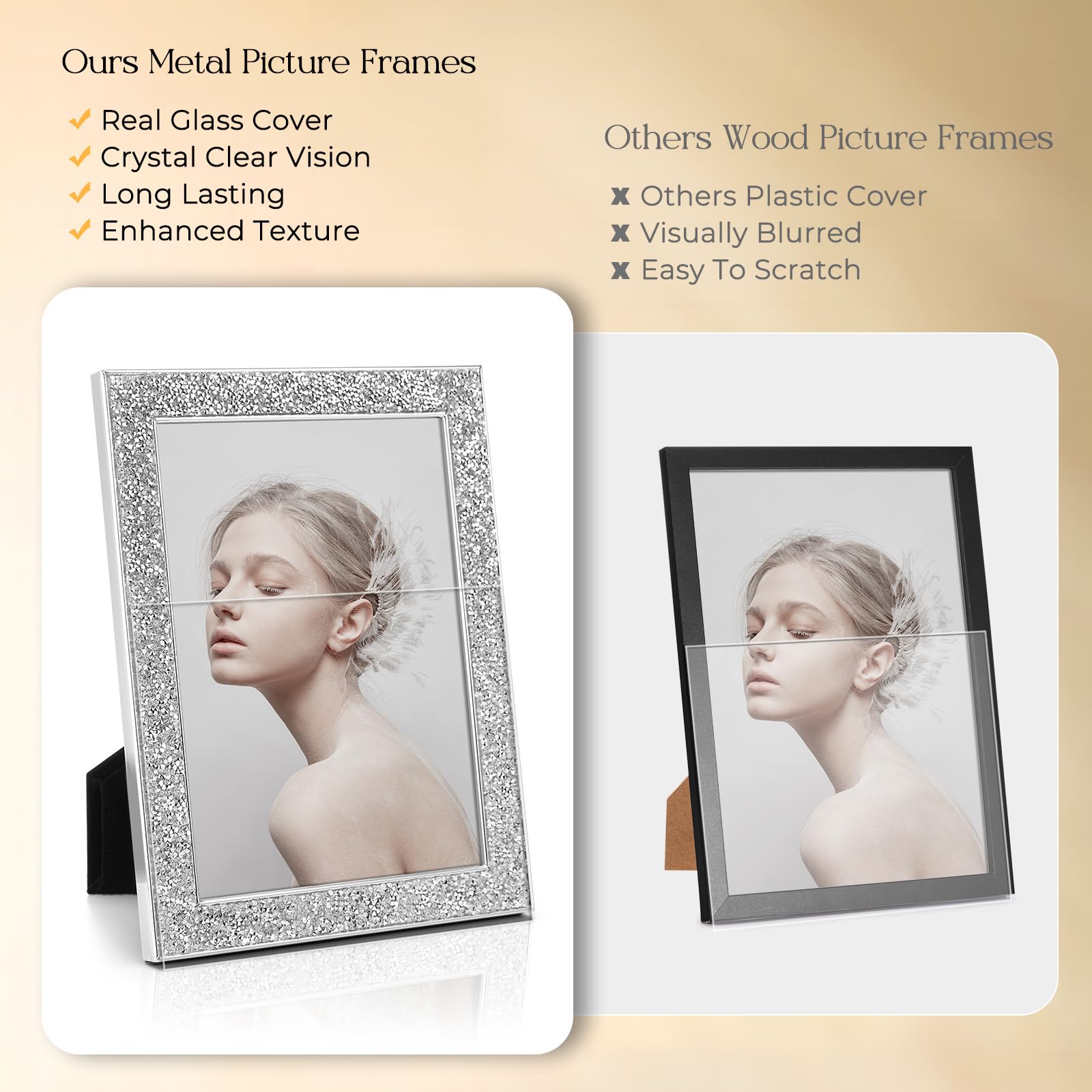 - Luxury Sparkly Picture frames:This 8x10 picture frame crafted from premium metal material,they surrounded by blingbling sequins, which looks very luxury, elegant and ornate, perfectly presenting your precious memories or favorite photos.It will draw eyes to the photo, and can be well matched with various decorative styles well