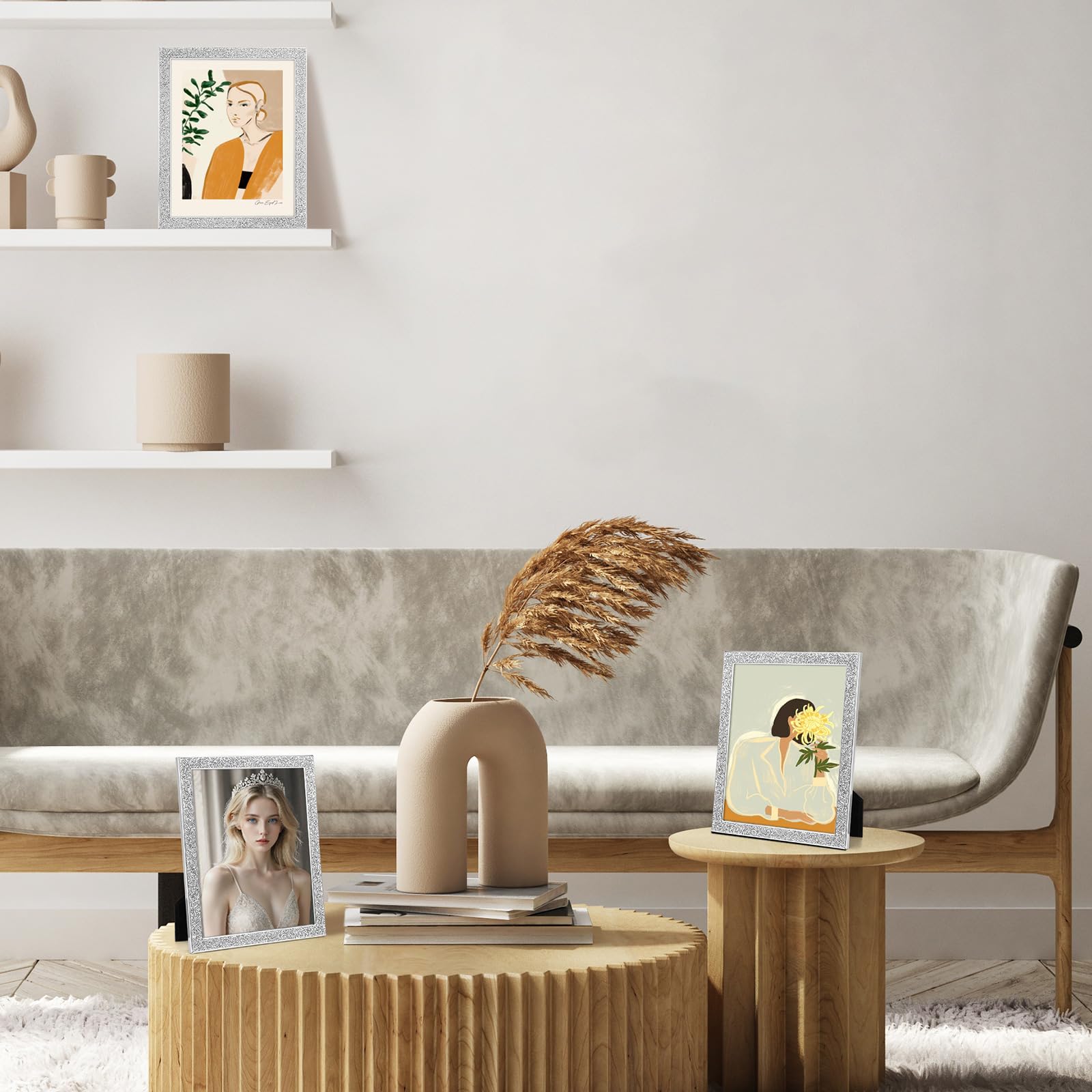 TWING 8x10 Picture Frame,Silver Sequins Bling Glitter Photo Frame with HD Real Glass,Silver Metal Picture Frames for Tabletop Display,Ideal Gift to Family and Friends(Silver,1 Pack)