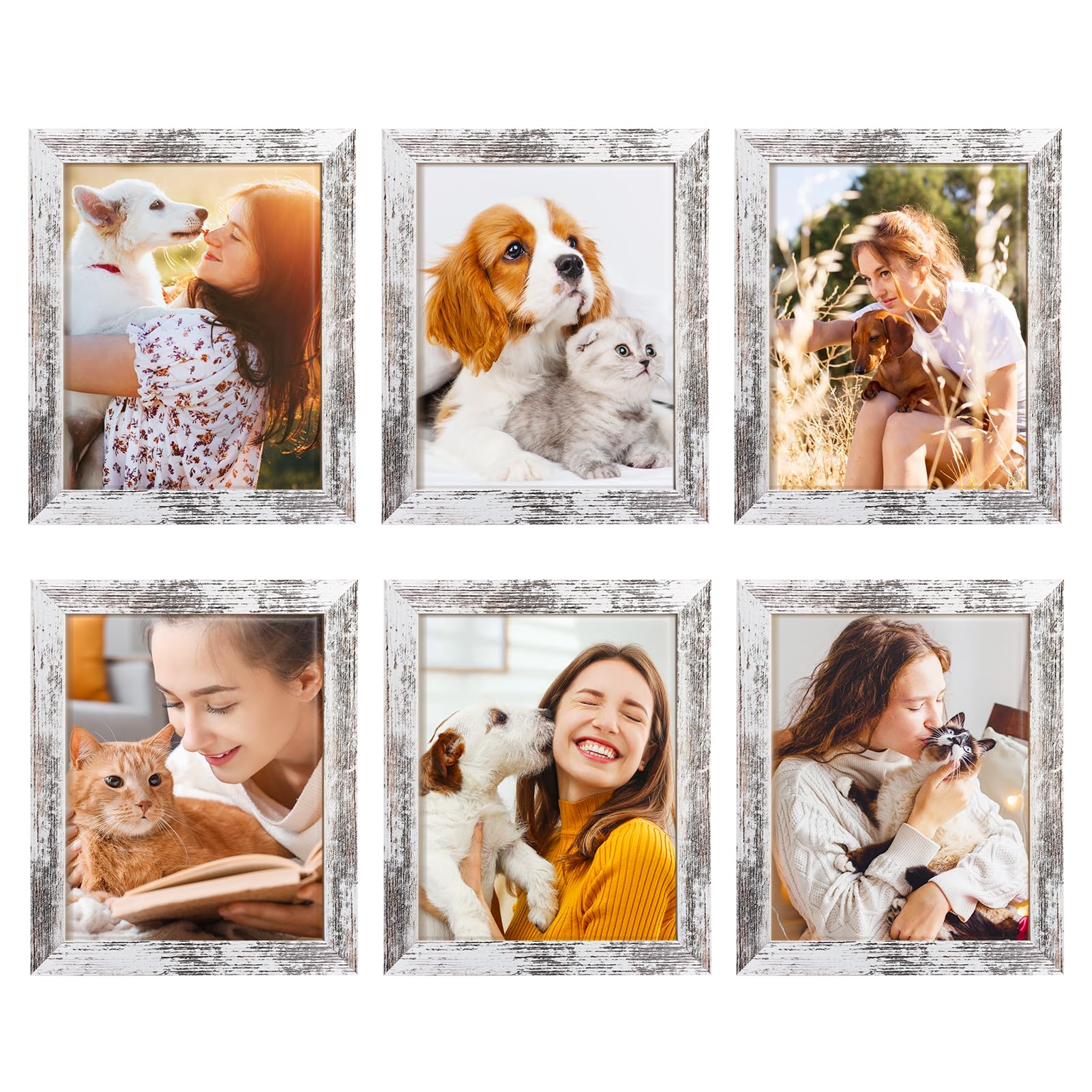 TWING 8x10 Rustic Picture Frames Set of 6 Distressed White Composite Wood Farmhouse Photo Collage Frame For Wall Decor Gallery Wall Frame Set Mounting or Table display, Ideal Valentine Gifts for
