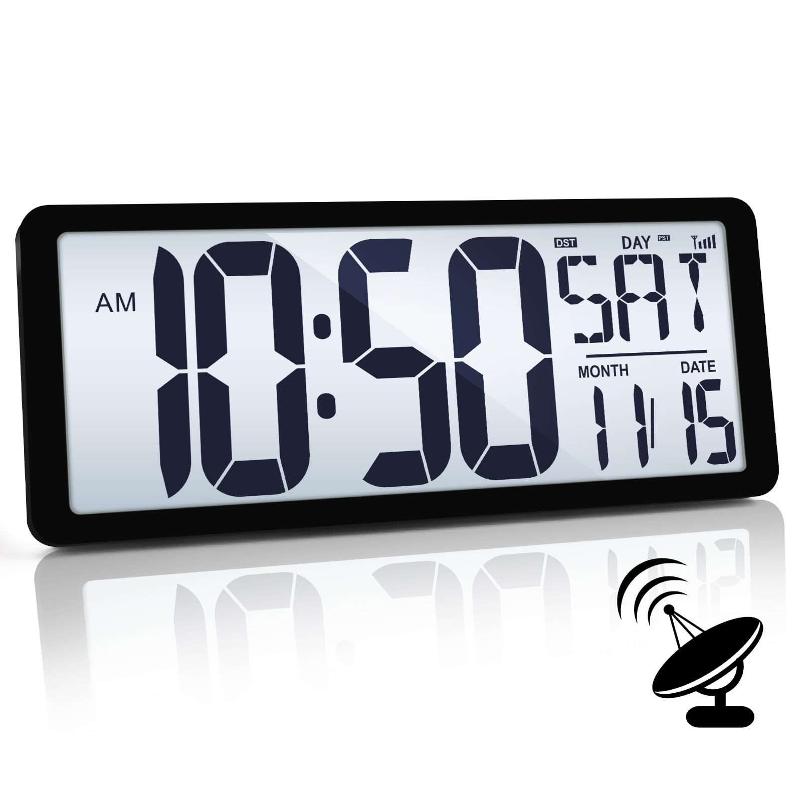 TXL Atomic Clock with Backlight, 14.2" Large Digital Wall Clock Battery Operated, Digital Clock Large Display with Day, Date & Temperature, Large Wall Clock for Bedroom, Livingroom, Office