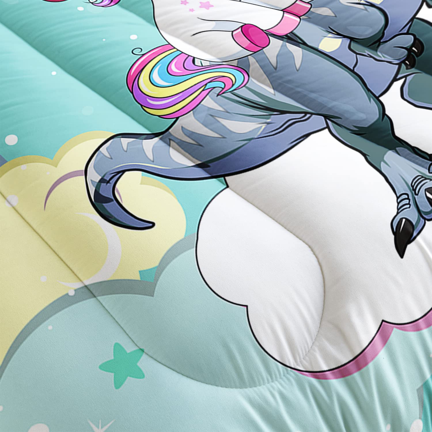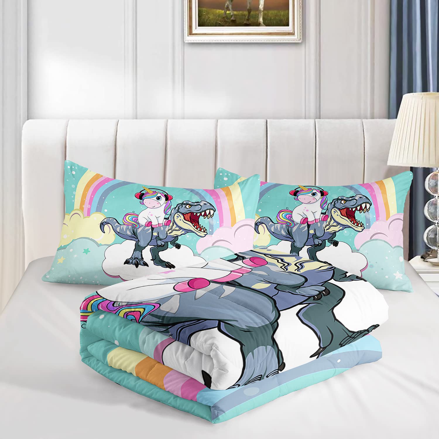 Unicorn Comforter Set 3Pcs Cartoon Dinosaur Kids Bedding Set Rainbow Cloudy Star Bed Set with 1 Comforter and 2 Pillowcases
