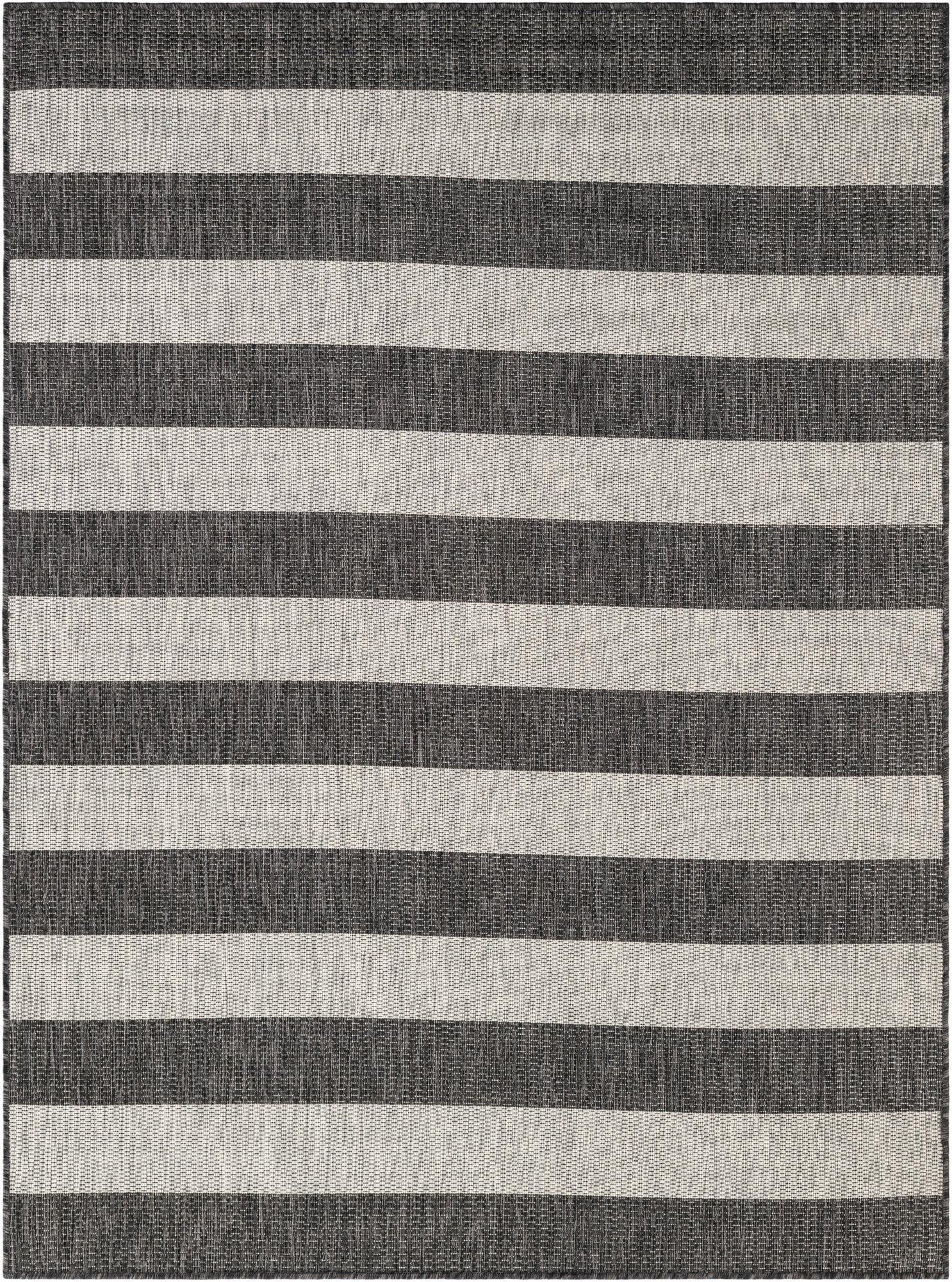 Unique Loom Outdoor Striped Collection Area Rug - Distressed Stripe (5' 1" x 7' 1" Rectangle Charcoal Gray/Ivory)