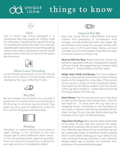 - Easy-to-clean, stain resistant, and does not shed - underlay (rug pad) recommended to prevent slipping and sliding