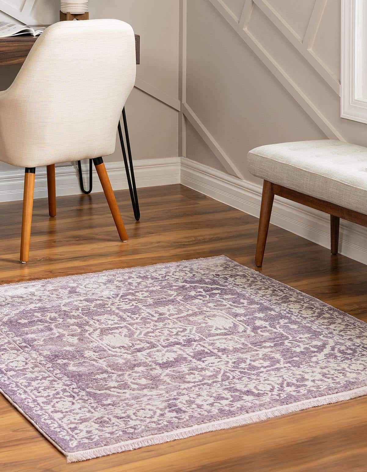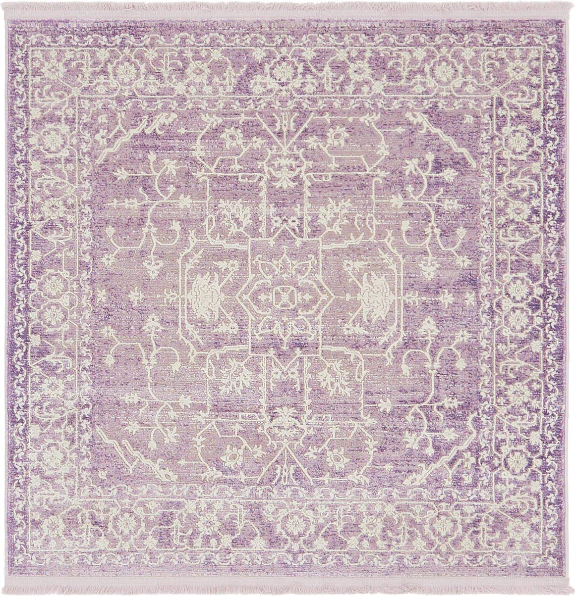 Unique Loom Traditional Classic Intricate Design Distressed Vintage Detail, Area Rug, 4 ft, Purple/Ivory