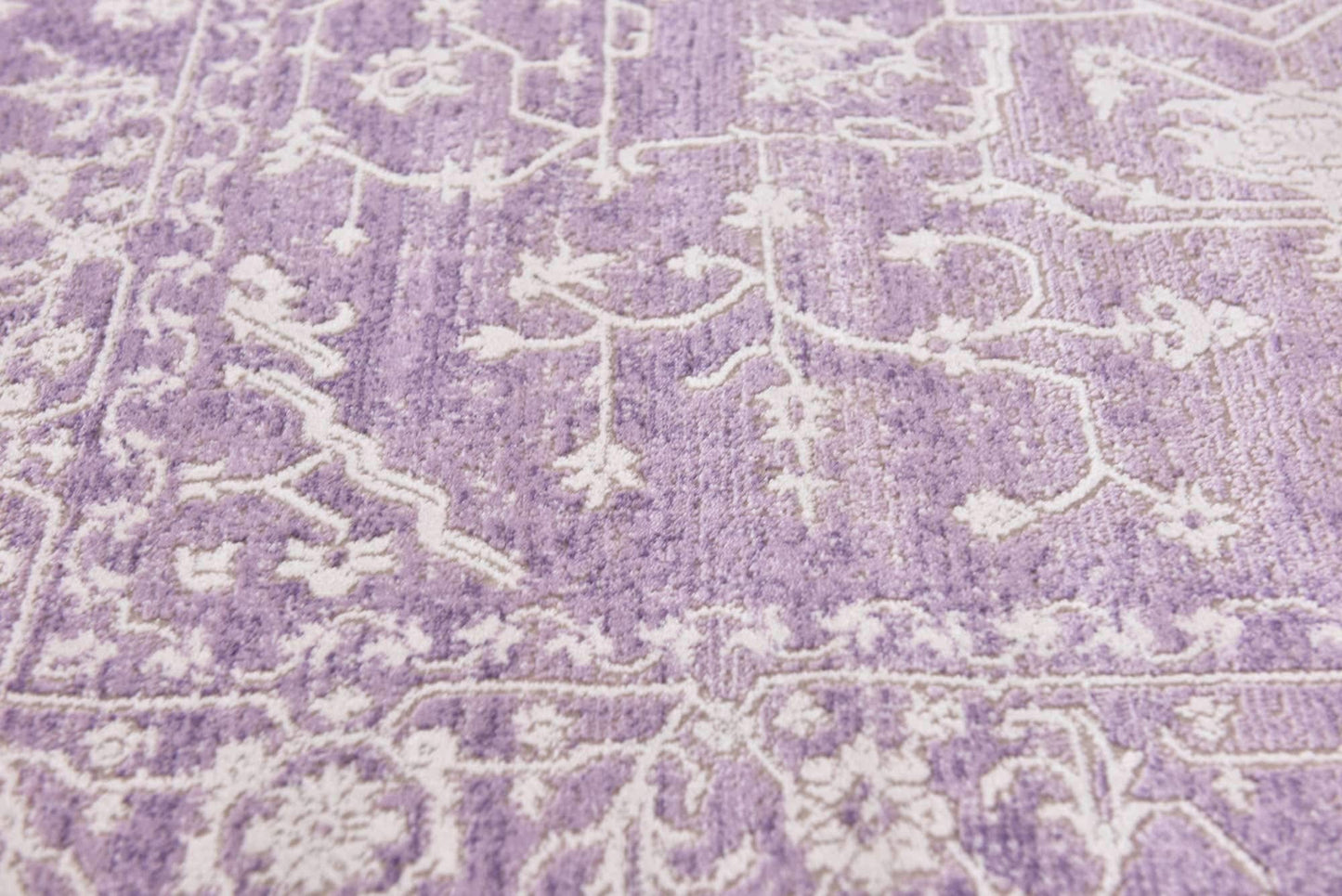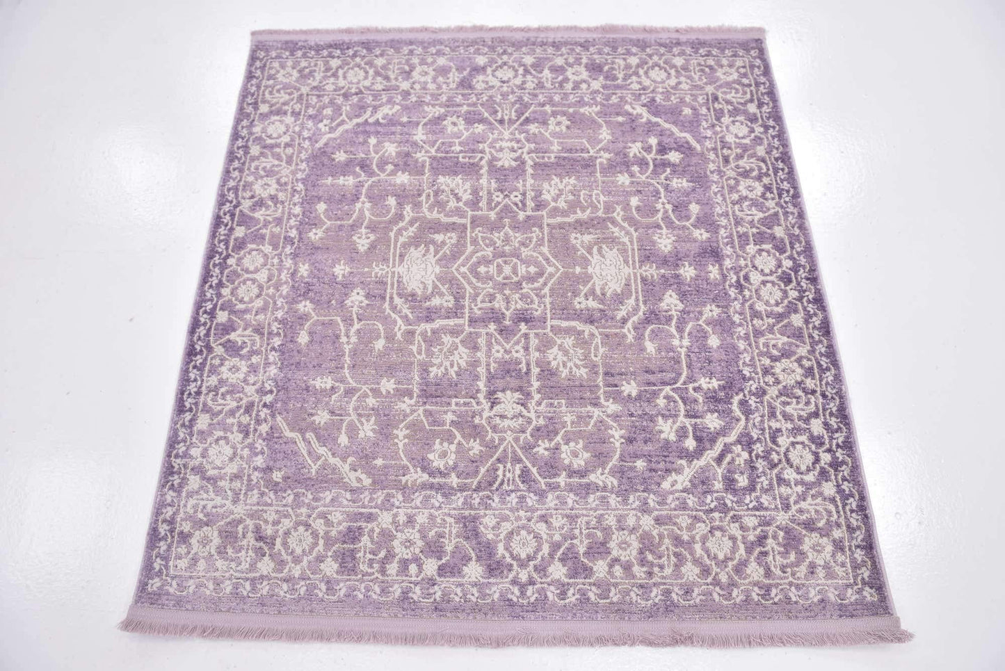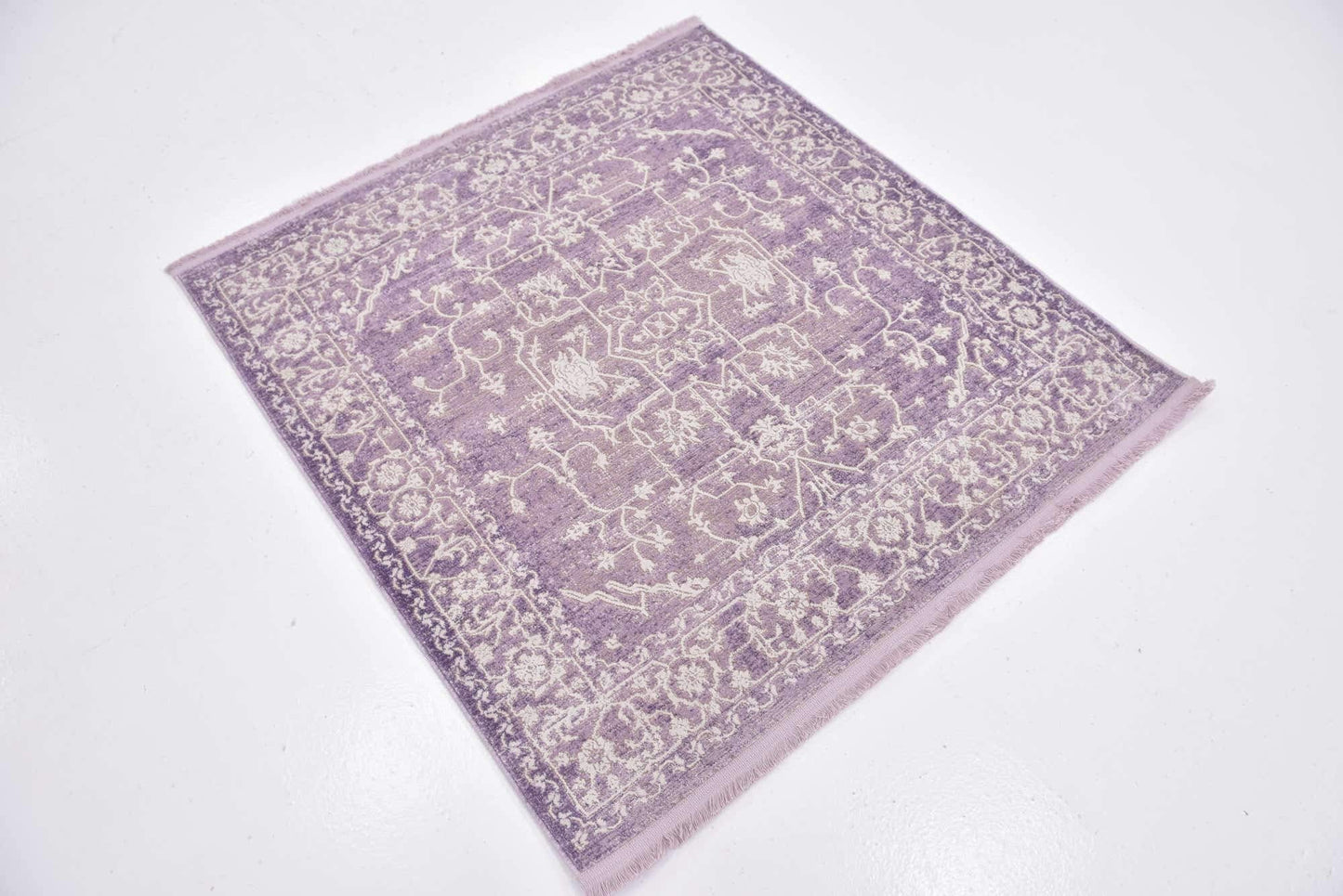 - Size in FT: 4' 0 x 4' 0 - Size in CM: 125x125 - Pile Height & Thickness: 1/3" - Colors: Purple, Ivory