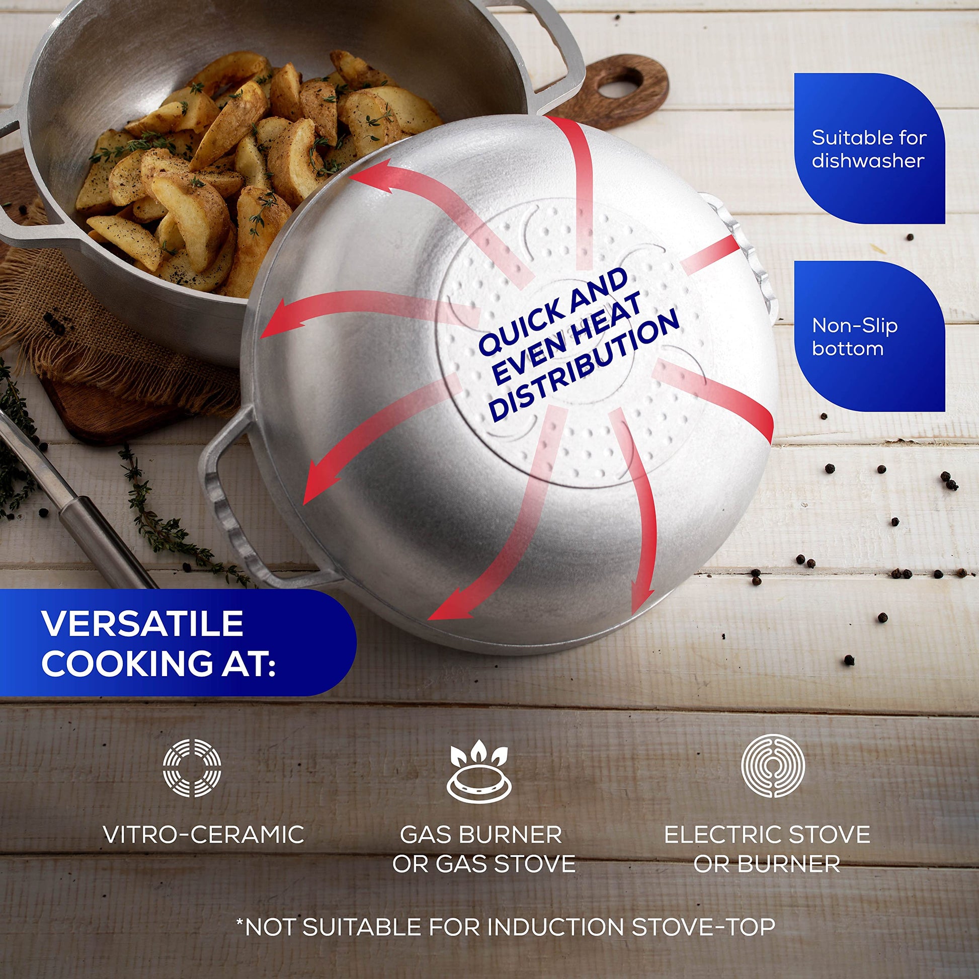 - ✅ Durable & Efficient Cast Aluminum Caldero – Perfect for Everyday Cooking: Designed for home kitchens, this lightweight yet ultra-resistant 4.2 QT caldero ensures even, rapid heating, allowing you to prepare meals faster and more efficiently. The premium stainless cast aluminum construction helps retain flavors, ensuring that every dish is cooked to perfection. Plus, it’s easy to clean and won’t absorb odors or alter the taste of your food.