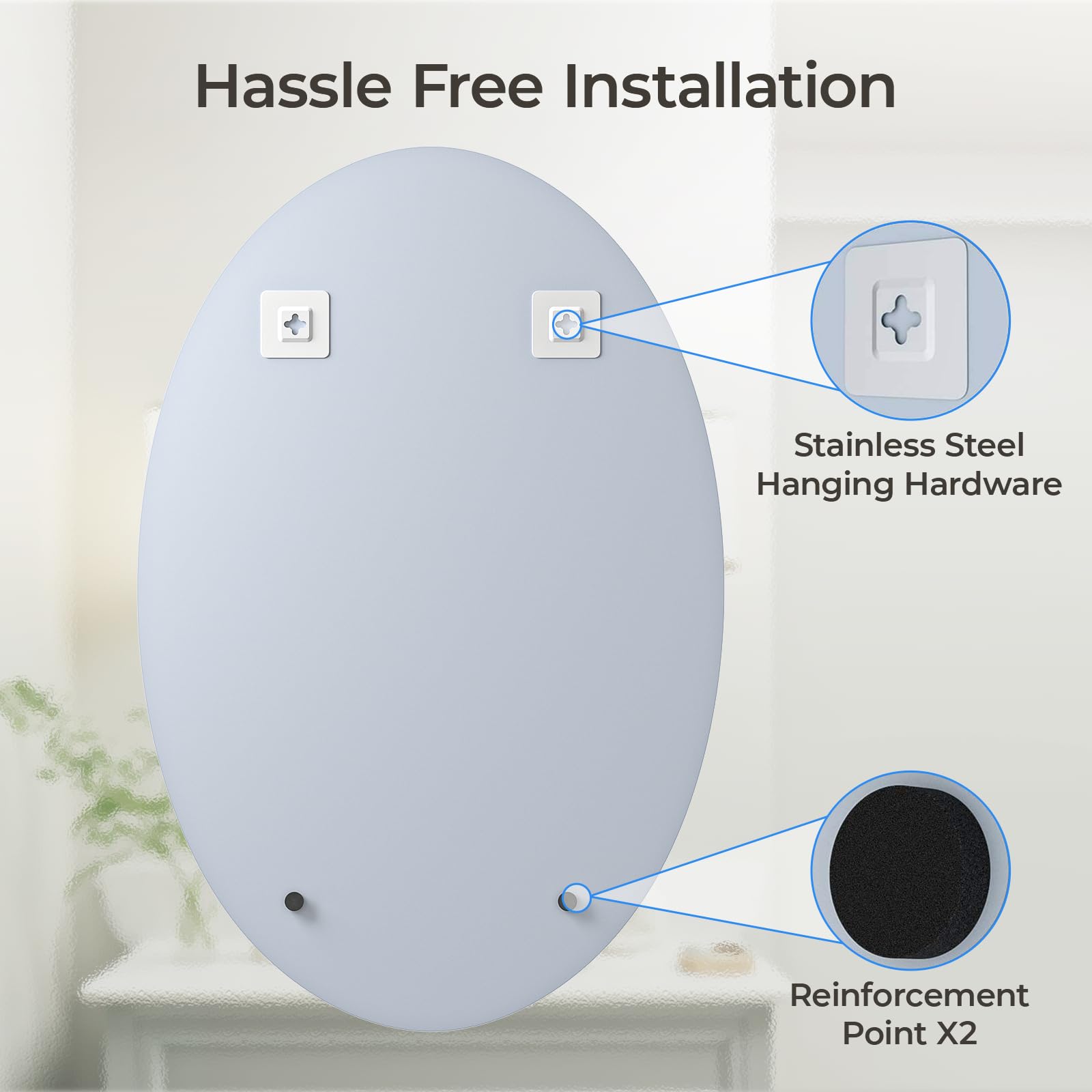 - Exquisite Details: USHOWER oval bathroom mirror has polished edges for a smooth and friendly touch. Additional explosion-proof film protects your family from splinters.