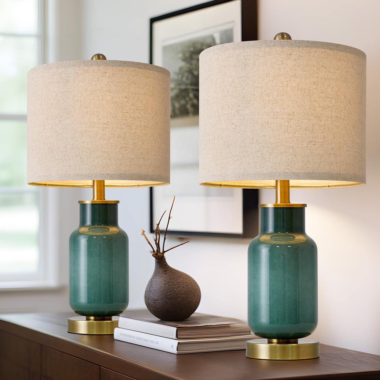 - Elegant and stylish glass designs: Farmhouse table lamps body made of Jade green glass, Elegant and stylish glass designs adding elegance and refinement to your living space