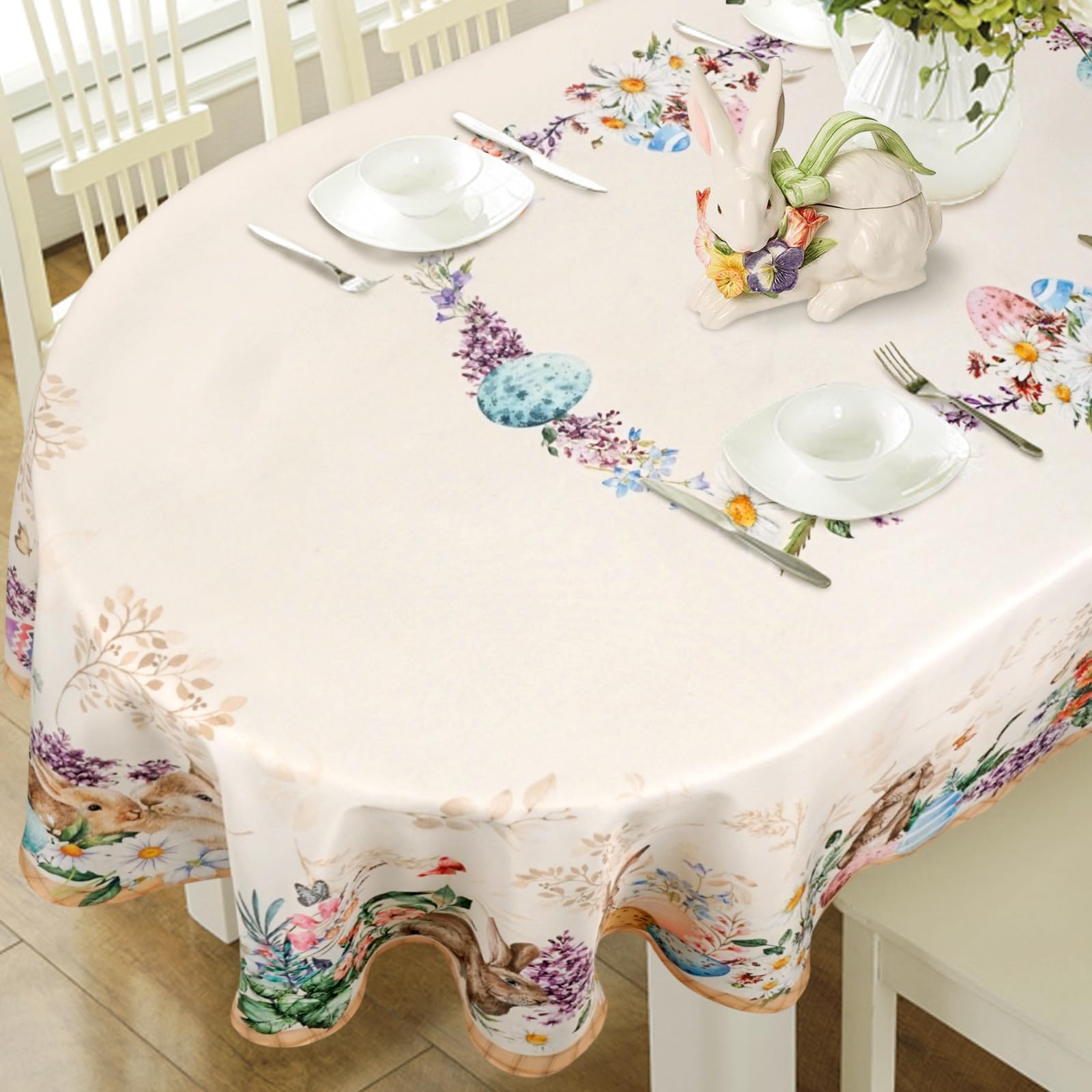uwdfnwuif Easter Oval Tablecloth 60" x 120" Waterproof Fabric Spring Easter Bunny Table Cloths for Indoor Outdoor Kitchen Dining