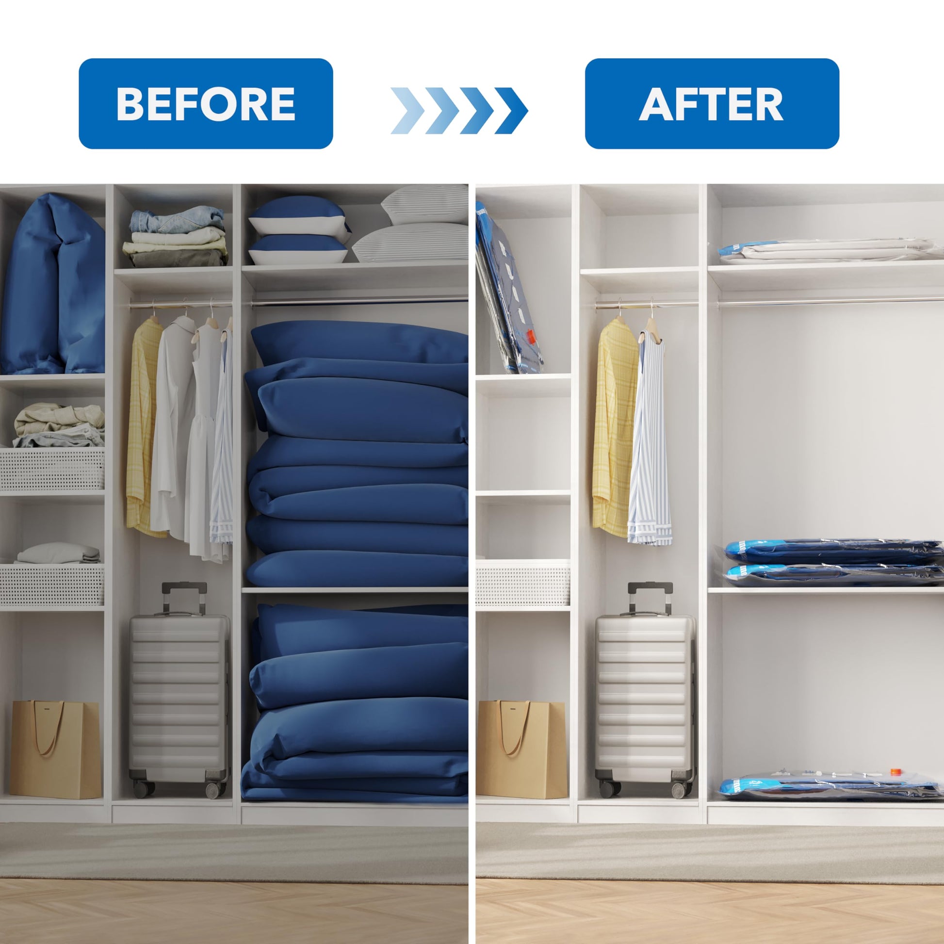 Vacuum Storage Bags with Electric Air Pump 24 Combo (5 Jumbo/5 Large/5 Medium/5 Small/4 Roll), Space Saver Sealer Bags, Airtight Compression Bags for Clothes, Pillows, Comforters, Blankets, Bedding