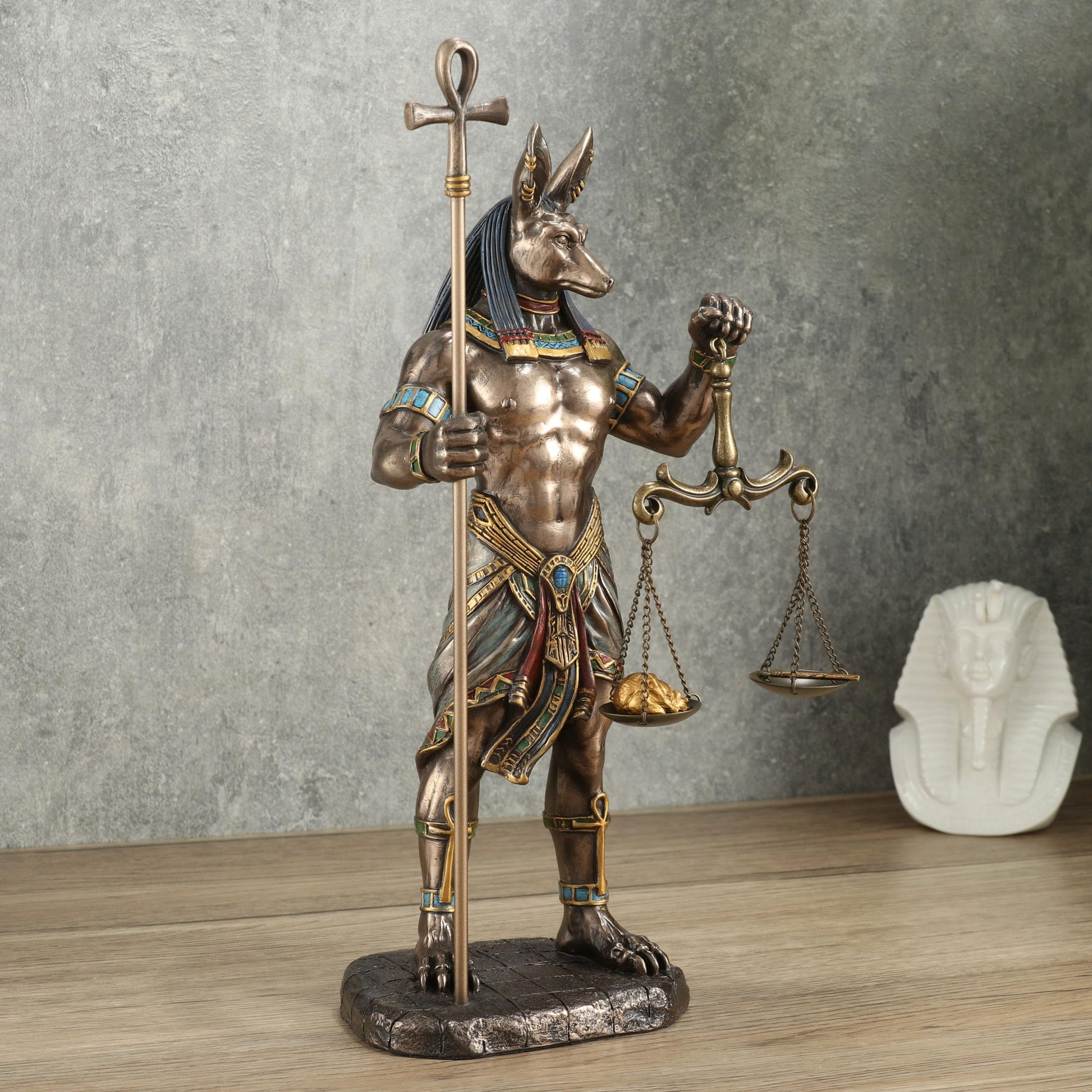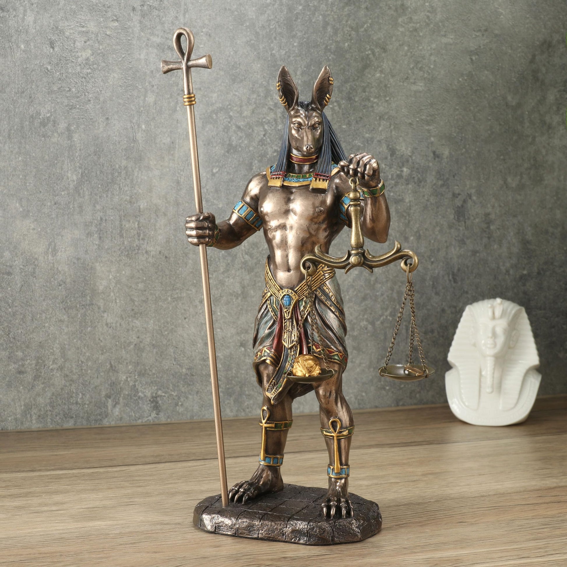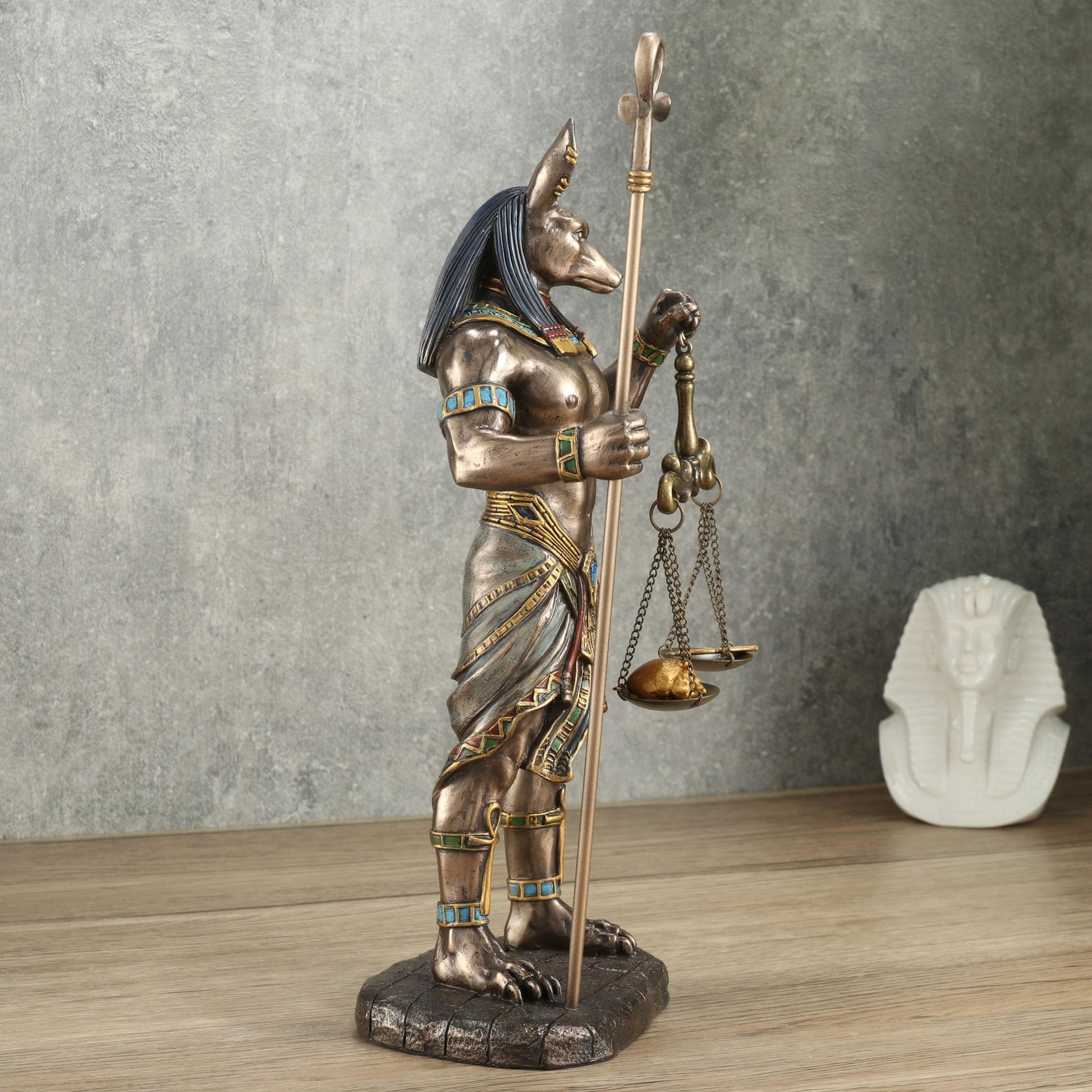 Veronese Design 10 5/8 Inch Anubis Holding Ankh Staff and Scale Resin Sculpture Cold Cast Bronze