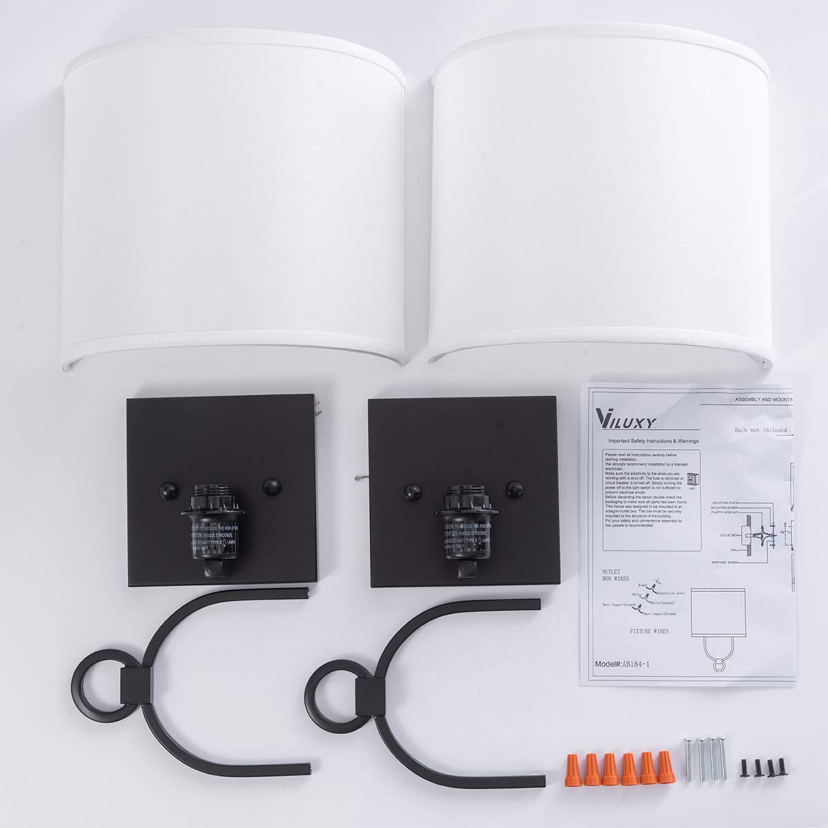 VILUXY Modern Wall Sconces Bedside Wall Sconce Lighting Fixture with White Fabric Shade for Bedroom, Hallway, Entryway, Passway, Bathroom, Vanity 2 Pack