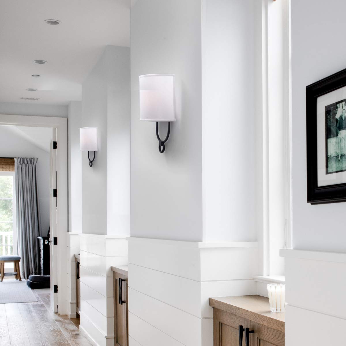 - Design: This wall light crafted from metal, and is decorated the curved design white fabric shade, providing a comfortable and warm look.