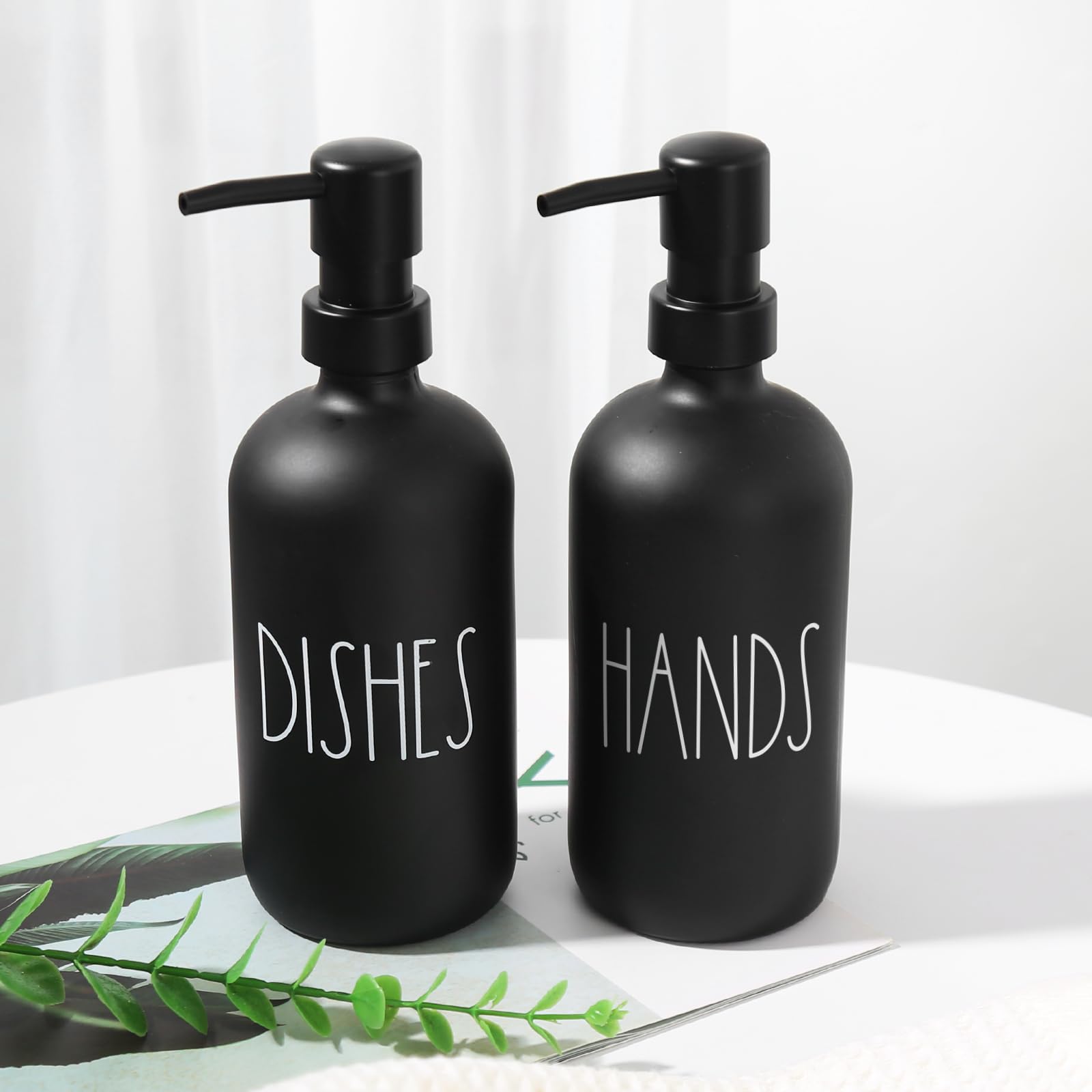 VIMERPA Hand and Dish Soap Dispenser Set, Matte Black Hands Dishes Soap Dispenser Set for Kitchen, 2 Pack Glass Soap Dispensers Set with Plastic Pump, 17 Fl Oz Refillable Liquid Soap Bottles