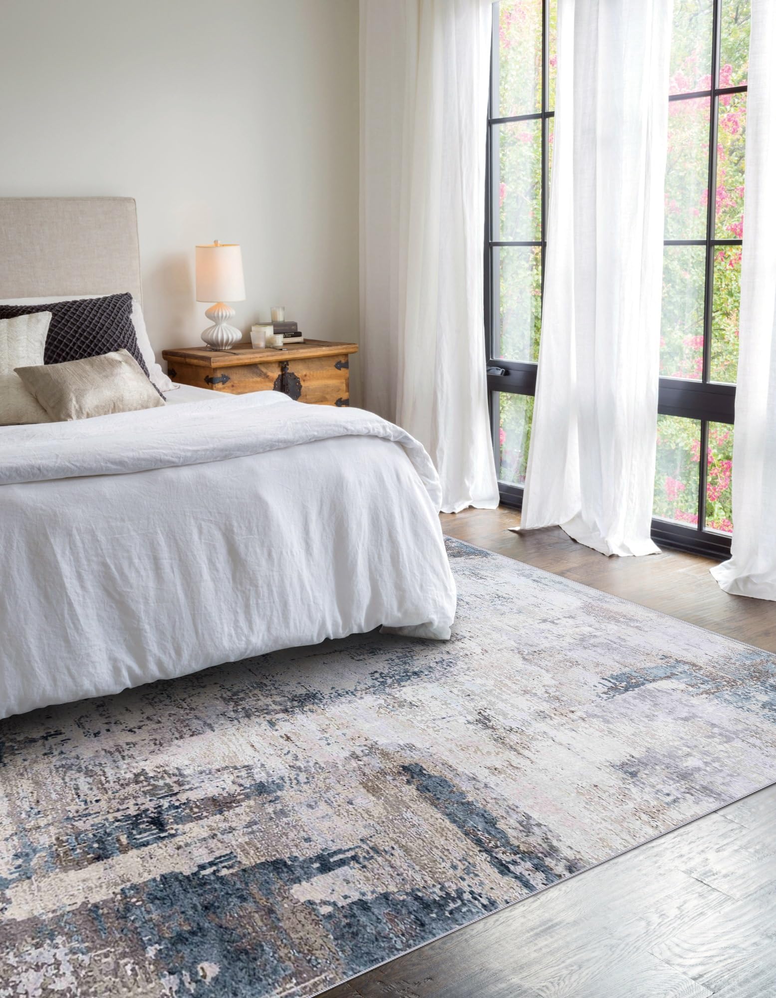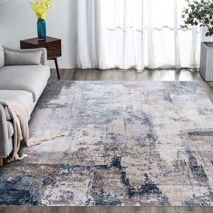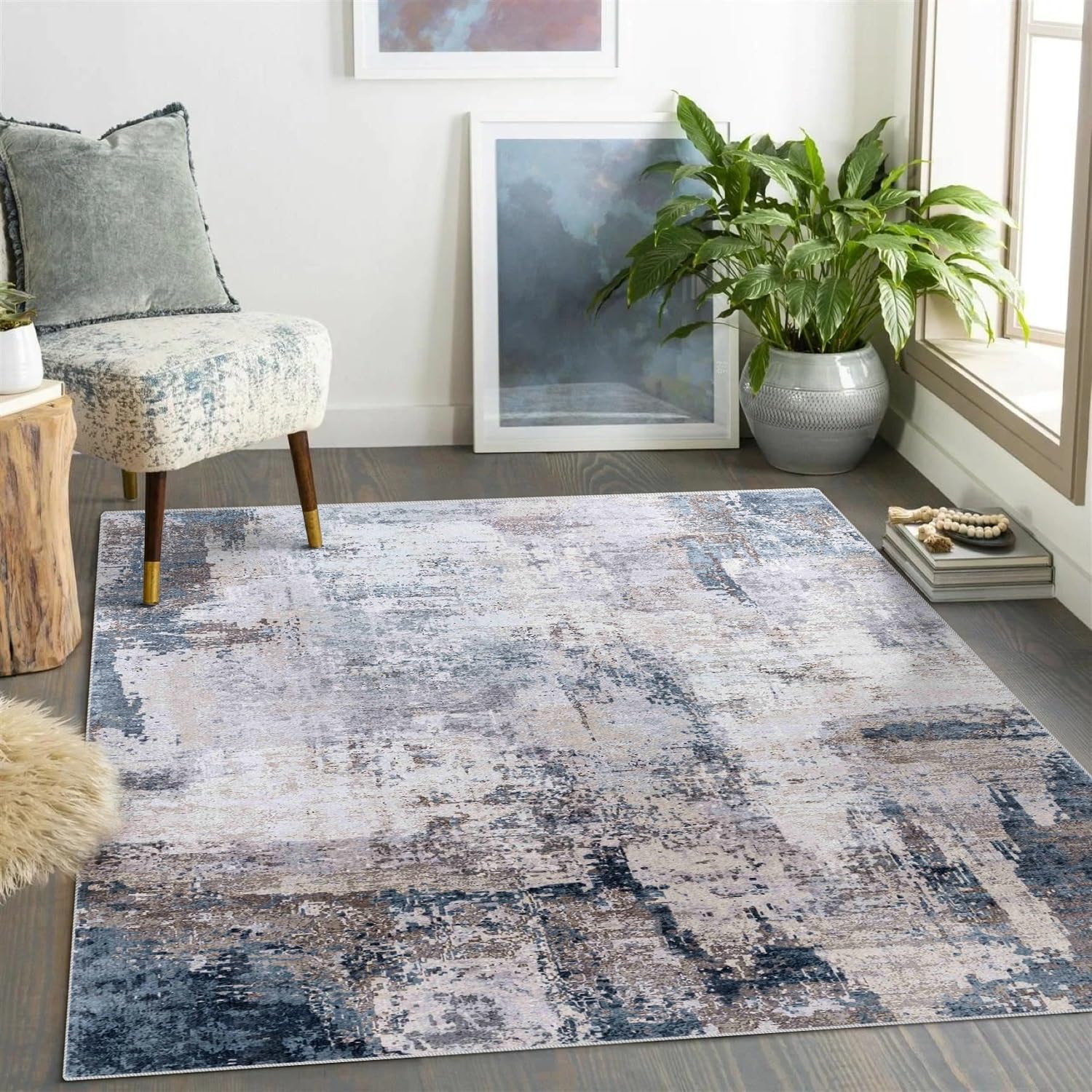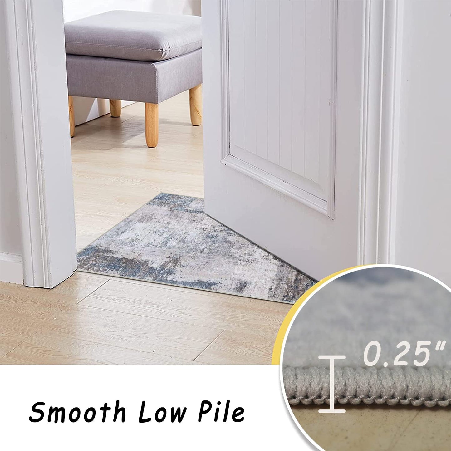 vivorug Washable Rug, Ultra Soft Area Rug 5x7, Non Slip Abstract Rug Foldable, Stain Resistant Rugs for Living Room Bedroom, Modern Fuzzy Rug (Grey/Navy, 5'x7')